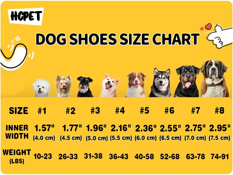 About this item Size 6: Width 2.55 inches for 52-68 lbs. Great for Medium Samoyed, Husky, Labrador, Airedale Terrier, Medium and large Chow Chow, etc. Please refer to the picture size chart and choose the right size for your puppy The paw wear can protection from sharp thorns and hot pavement. Help dogs to stand up on hardwood floors easier Anti-slip sole with 3M reflective straps provides stability and traction, helps your pet dog walk safely at night Waterproof four-sided stretch fabric, leather. Soft to paws Dog shoes are fastened firmly by straps, which are long and adjustable. Please try to tighten the straps after wearing, which can effectively prevent the shoes from falling off the dog's claws › See more product details