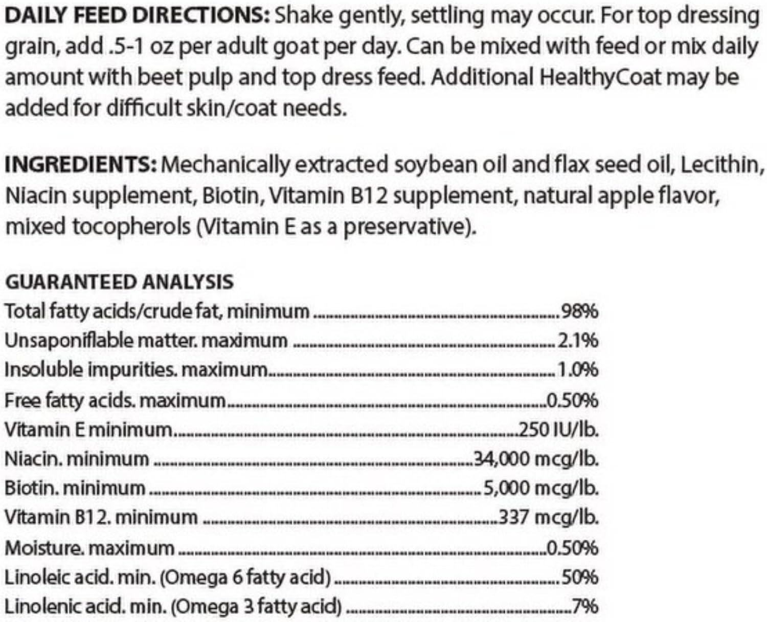Omega 3 & 6 Essential Fatty Acids Improves Immune System Promotes Glossy Hair Coat; Enhances Skin and Hoofs Improves Milk Production Improves Palatability › See more product details