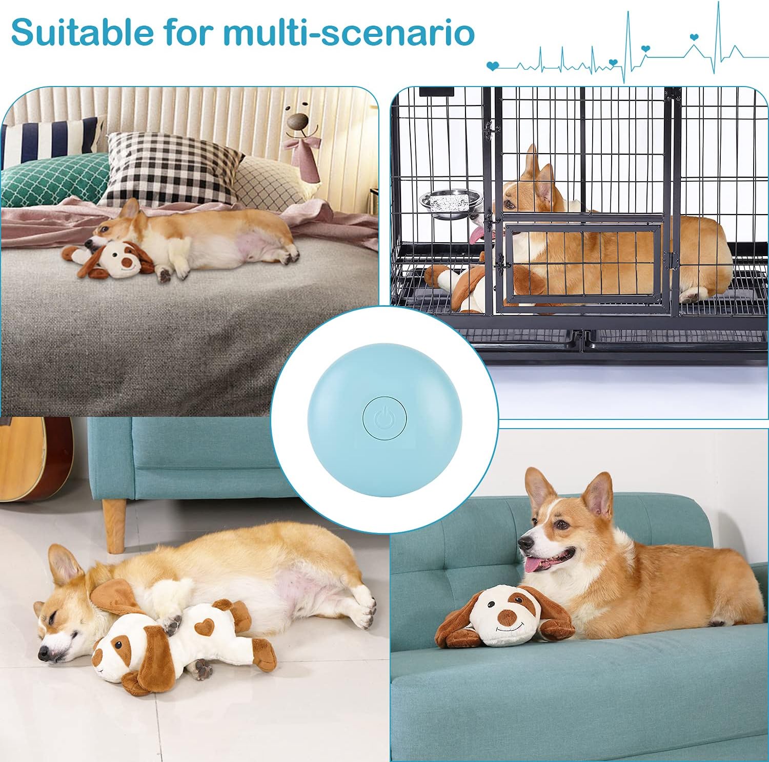Anxiety Relief: The heartbeat puppy toy simulates an atmosphere of accompany, it can help puppies and cats to relief the separation anxiety, loneliness, go through the tough time and adapt the new home or other complex environment. it is a good behavioral training aid toy which could comfort your puppies sleep better. đđImportant tips for heartbeat device: Press and hold the switch long enough, it works; Press and hold the switch long enough, it stops. Behavioral Training Aid Toy: With a simulation true pulsing heartbeat module, the puppy heartbeat toy simulates an environment that the pets are not alone and someone is with them. it is a good companion and a sleep training aid tool for your puppies and pets. Heartbeat Simulator Module: The heartbeat Simulator need 3 AAA batteries(No battery included in the package). Press the button, then the heartbeat module works. Easy to operate. Durable and Washable: The puppy plush toy is made of comfortable and high quality fabrics, support machine washable on gentle cycle, just remember to remove the heartbeat simulator before cleaning. Our Service: we hope to provides the best company and comfort to puppies, cats. If you have any question, please do not hesitate to contact us. We will feedback to you ASAP.Important tips for heartbeat device ïŒ Press and hold the switch long enoughïŒit works; Press and hold the switch long enoughïŒit stops. âș See more product details