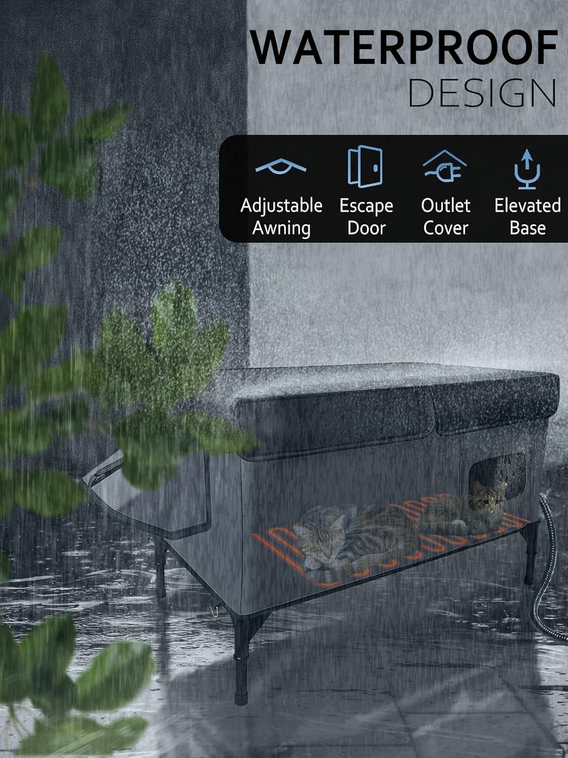 About this item ๐๐ญ๐ฉ๐ง๐๐ข๐-๐๐๐๐ฉ๐๐๐ง ๐พ๐๐ฉ ๐๐๐๐ก๐ฉ๐๐ง:โ Specifically engineered for winter and extreme outdoor conditions, this outdoor cat house protects against heavy rain, snowstorms, hail, and gale-force winds.An essential safeguard for stray cats facing harsh weather ๐ผ๐ก๐ฌ๐๐ฎ๐จ ๐ฟ๐ง๐ฎ,๐ผ๐ก๐ฌ๐๐ฎ๐จ ๐๐๐ง๐ข: Crafted from waterproof PVC-coated fabric,this heated outdoor cat house features adjustable eaves to block horizontal rain and an elevated off-ground design that prevents moisture absorption.Together,these innovations achieve 360-degree weather protection, ensuring a consistently warm,dry refuge for cats ๐๐๐ฃ๐ฉ๐๐ง-๐๐ง๐ค๐ค๐ ๐๐๐๐ฉ๐๐ ๐พ๐๐ฉ ๐๐ค๐ช๐จ๐:โ Featuring a built-in heating pad that delivers constant warmth, this feral cat shelter utilizes an aerospace-grade aluminum foil barrier to block 98% of thermal transfer.Even during heavy snowfall, its weather-sealed interior maintains a warm, dry microclimate. With your care, cats receive life-saving warmth in freezing conditions โฅ๐๐ช๐ฉ ๐๐๐๐๐ฉ๐ฎ ๐๐๐ง๐จ๐ฉ: This robust cat shelter delivers triple-layer protection:Impact-resistant cat house blocks falling objects, a quick-escape side door allows instant evasion of predators like raccoons and foxes, and the UL-tested heating pad features dual auto-shutoffs (overheat + flame-retardant protection) for safety.By proactively addressing nature's hazards,we provide cats 24/7 sanctuary where vigilance meets compassionate care ๐๐๐จ๐ฎ ๐พ๐ก๐๐๐ฃ ๐ฟ๐๐จ๐๐๐ฃ: This insulated cat house's detachable roof ensures easy cleaning and air-dry.Designed for outdoor communities or feral cats and small animals.Perfect for barns,farms,balconies,porches,gardens,under the eaves to use โบ See more product details