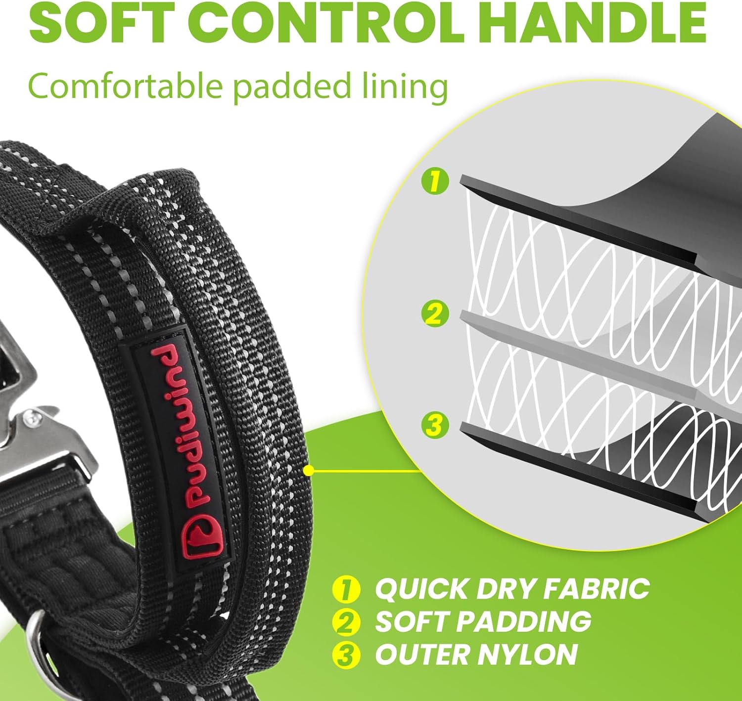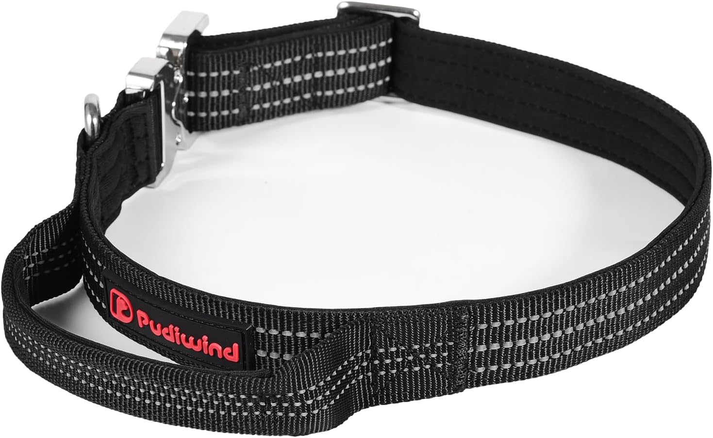 About this item PREMIUM MATERIAL-Black heavy duty nylon dog collar is made of high-strength nylon braided belt, with multi-thread sewing reinforcement, nice and sturdy, able to withstand 200KG instantaneous pulling force, suitable for medium and large dogs. QUICK RELEASE METAL BUCKLE-Heavy duty dog collar features a quick release metal tactical buckle for easy on and off, making it designed specifically for emergencies. Keep your pet safe and secure with this strong and reliable heavy duty dog collar. SOFT PADDING-Equipped with a thick padded neoprene lining, this soft padded nylon dog collar combines comfort with functionality, which will not hurt dog’s fur and keep the dog's neck well,suitable for daily use of medium and large dogs. CONRTOL HANDLE DESIGN-Heavy duty dog collar comes with a special control handle, which can help you control your dog precisely, suitable for medium and large dogs, especially for dog training, patrolling, walking and hunting. HIGHLY REFLECTIVE-Three reflective stitching makes this black nylon dog collar high reflective at night. This reflective dog collar could be used as a safety gear for night walking and camping trips. EASY TO ADJUST-Crafted with Zinc Alloy Buckle Dog Collar adjustment system,this heavy duty dog collar offers 43-56cm adjustable dog collar range to instantly accommodate the sizes of medium to large dog breeds and giant dogs. Nice for growing puppies or multi-dog households. BREATHABLE AND QUICK DRYING-Made of breathable quick-drying nylon fabric that absorbs sweat, keeping the padded dog collar fresh during intense activities. With a waterproof lining, easy to clean, maintaining hygiene for daily adventures while avoiding odor buildup. Nice for medium and large dogs to wear while hiking/running. STURDY METAL D RING-Black heavy duty dog collar comes with a strong metal D-ring to attach to the dog leash. Nice for medium to large dogs walking, training and daily wear. CLASSIC AND STYLISH DESIGN-Sleek urban durability meets rugged functionality in this heavy duty black dog collar. Built with a military-grade Metal buckle and reinforced nylon webbing, it effortlessly transitions from city streets to mountain trails—offering understated style that's as tough as your adventures. SIZE OPTIONS-Medium (Neck Circumference: 15" - 18", Collar Width: 1") Large (Neck Circumference: 17" - 22", Collar Width: 1") Please measure your dog's neck circumference before ordering to ensure the collar fits your dog, there should be a 2-finger gap between the collar and your dog's neck. Show more › See more product details