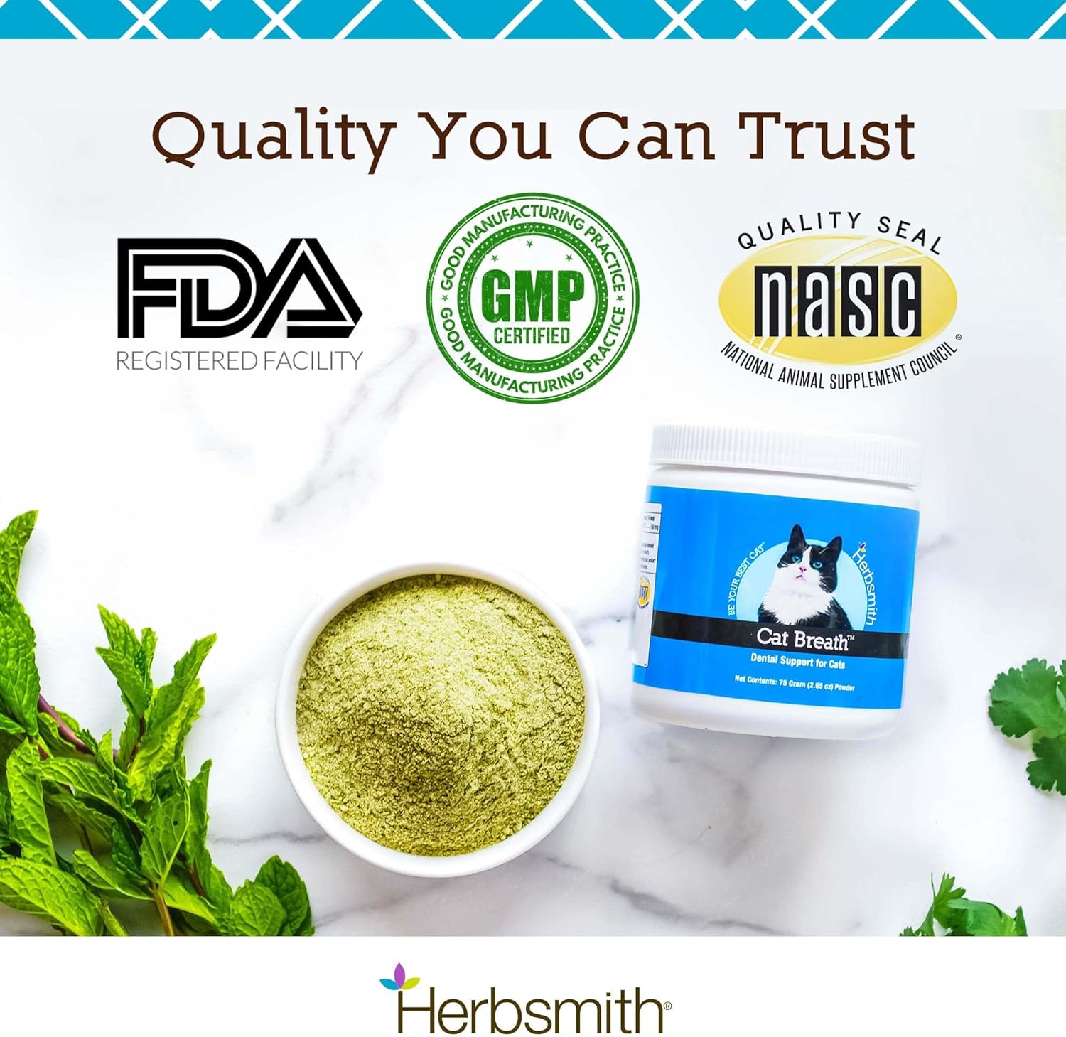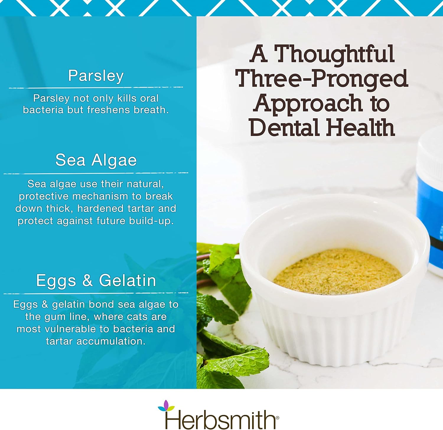 Cat Breath is crafted with innovative ingredients: sea algae, parsley, and binding agents. The focus is not just on helping with stinky cat breath, but also on breaking down tartar that accumulates at the gum line. Cat Breath is different from other cat dental chews, water additives, and dental sticks--the all-natural sea algae evenly coat teeth to target all tartar build-up, while parsley makes your kitty’s breath fresh and clean. Scoop over their evening meal, make it into toothpaste, add to their water, or whip up a treat--Cat Breath lets you (and your cat) decide their dental care style. For noticeable results, make Cat Breath a part of their everyday routine!
