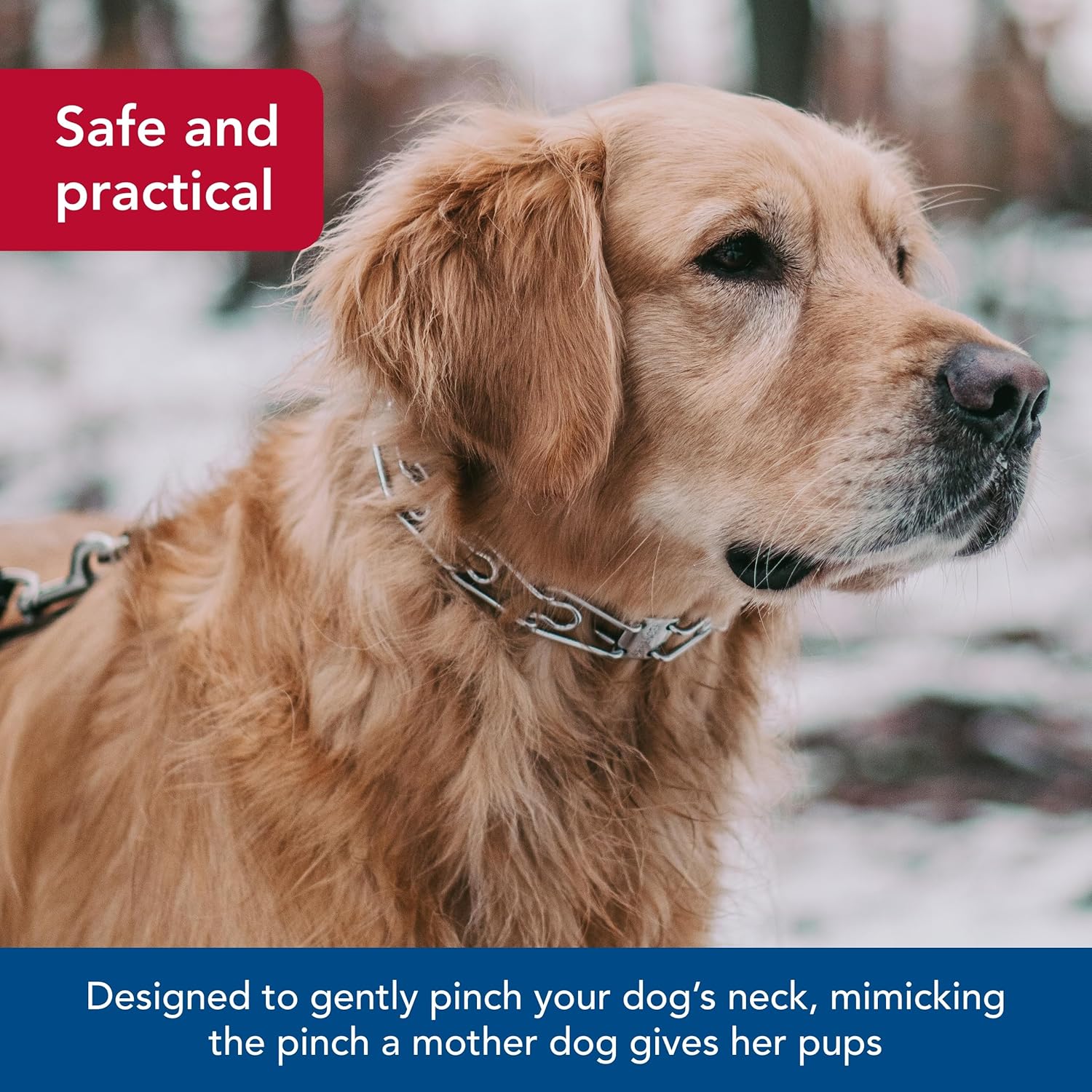 The Herm. Sprenger Ultra-Plus Prong Dog Training Collar is safe, practical and easy to use. This training collar features a solid fastener plate that provides a more secure connection making fastening the collar around your dog's neck easier and safer. To adjust size, add or remove individual links. The patented center plate construction and symmetrical prong placement provide natural contact for optimal communication. Herm. Sprenger offers a variety of high-quality, specialty chain products.