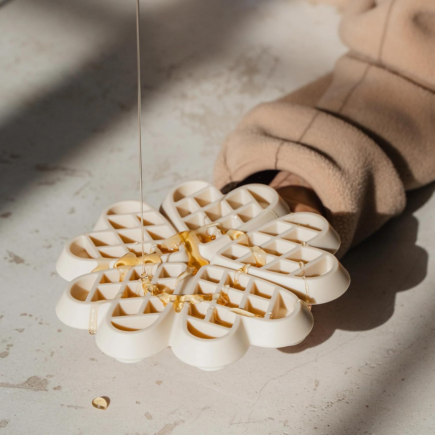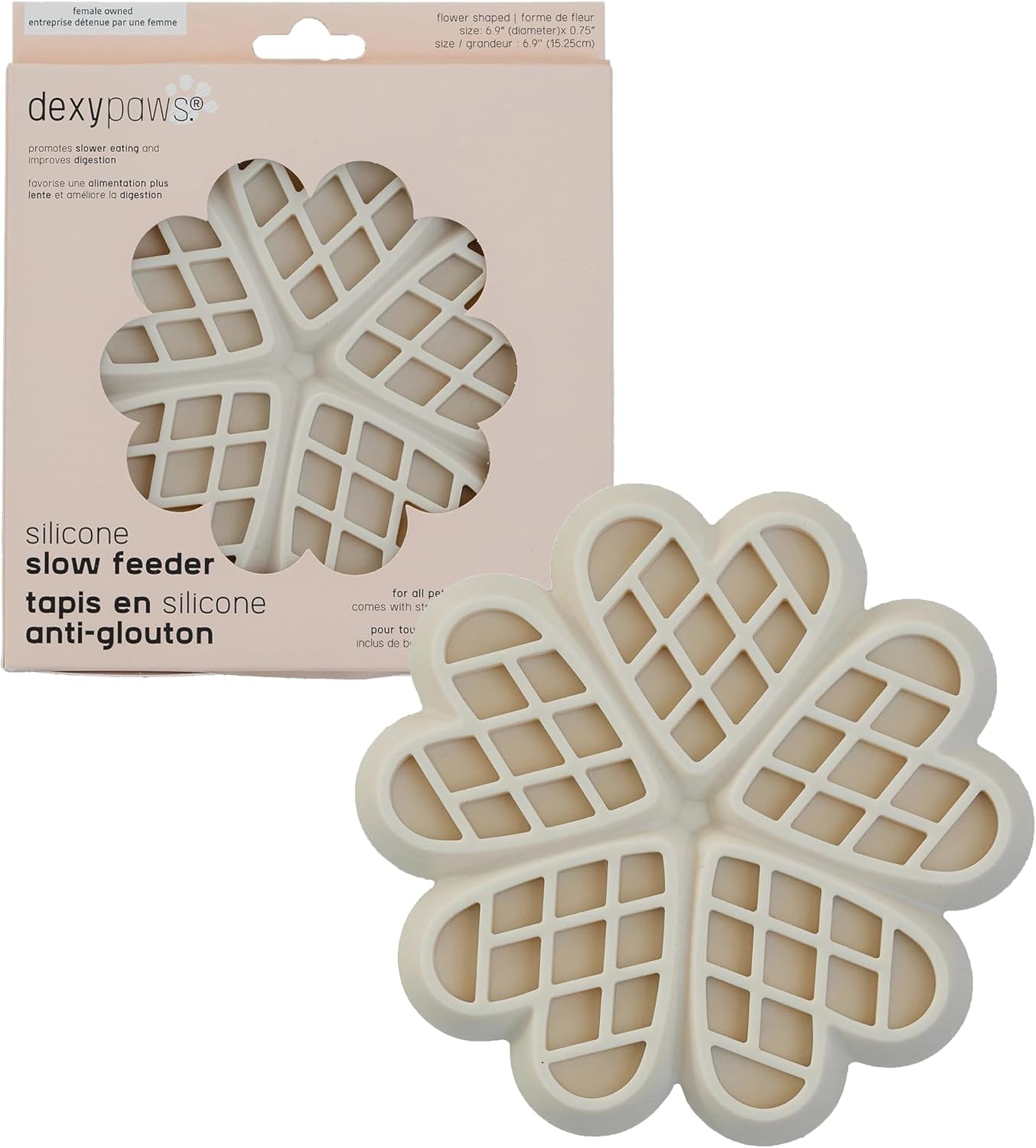 DEXYPAWS: HIDE & SEEK SLOW FEEDER - BUTTERCREAM - Make mealtime fun and healthy with our newly released Pet Slow Feeders! This feeder's unique shape catches the eye and the color palette complements any decor. Crafted from 100% silicone, this feeder is BPA-free and made from human-grade materials, ensuring your pet’s safety during feeding times. Designed to fit most 8-inch bowls, it features strong suction cups at the base to keep it securely in place whilst your dog eats. This playful flower-shaped feeder is not just a treat for the eyes, but also promotes better eating habits. Perfect for slowing down fast eaters and in turn promoting better digestion, it turns mealtime into a playful, enriching experience. The best part is that it is ideal for dogs of all sizes! This versatile slow feeder turns feeding time into a fun and enriching experience that complements your home decor. It’s easy to clean—just rinse or toss it in the dishwasher for hassle-free maintenance. Thoughtfully designed for everyday use, it’s a must-have for any pet-loving household.