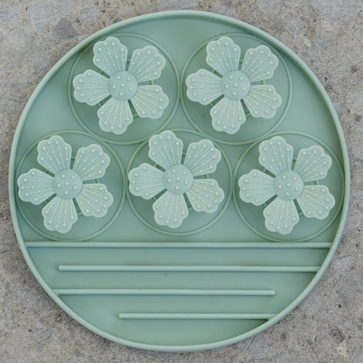 DEXYPAWS: HIDE & SEEK SLOW FEEDER - SAGE GREEN - Make mealtime fun and healthy with our newly released Pet Slow Feeders! This feeder's unique shape catches the eye and the color palette complements any decor. Crafted from 100% silicone, this feeder is BPA-free and made from human-grade materials, ensuring your pet’s safety during feeding times. Designed to fit most 8-inch bowls, it features strong suction cups at the base to keep it securely in place whilst your dog eats. This playful flower-shaped feeder is not just a treat for the eyes, but also promotes better eating habits. Perfect for slowing down fast eaters and in turn promoting better digestion, it turns mealtime into a playful, enriching experience. The best part is that it is ideal for dogs of all sizes! This versatile slow feeder turns feeding time into a fun and enriching experience that complements your home decor. It’s easy to clean—just rinse or toss it in the dishwasher for hassle-free maintenance. Thoughtfully designed for everyday use, it’s a must-have for any pet-loving household.