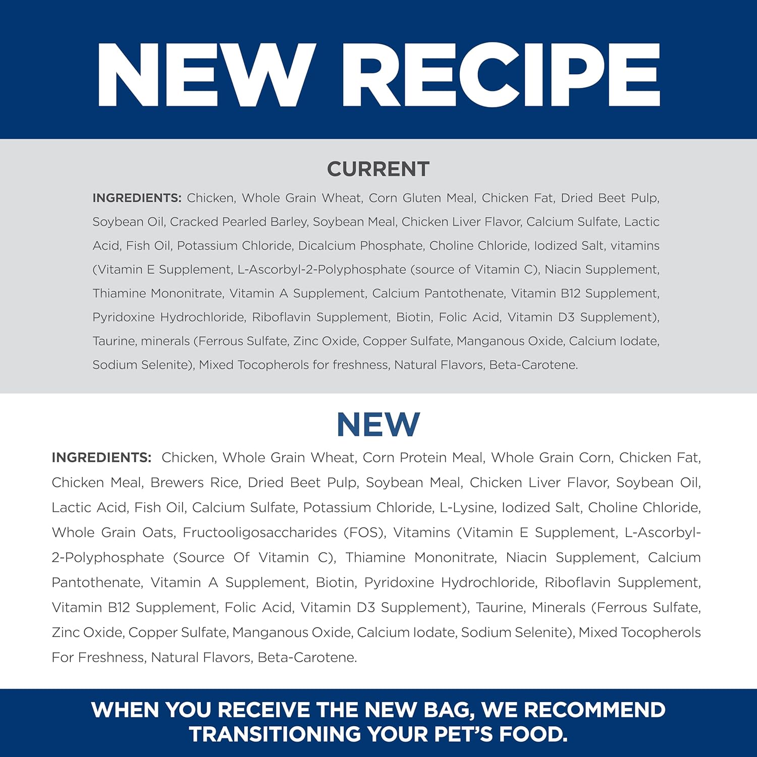 Your adult cat needs a pet food that supports healthy digestive, shiny fur, lean muscles and a healthy immune system. Hill's Science Diet Adult dry cat food is made with high-quality, easy-to-digest ingredients and is specially formulated to fuel the energy needs of cats during the prime of their life. A cat food made with natural ingredients, Hill's Science Diet Adult provides vitamin E plus omega-3 and omega-6 fatty acids to nourish your cat's skin. Packed with high-quality protein, this premium cat food also helps your grown cat maintain lean muscles. Additionally, this adult dry cat kibble provides your grown cat with essential taurine and balanced minerals to support heart health, bladder function and kidney function. There’s more to love with the new look of Science Diet. Some of our products also have new names, new kibble shapes & new formulas.