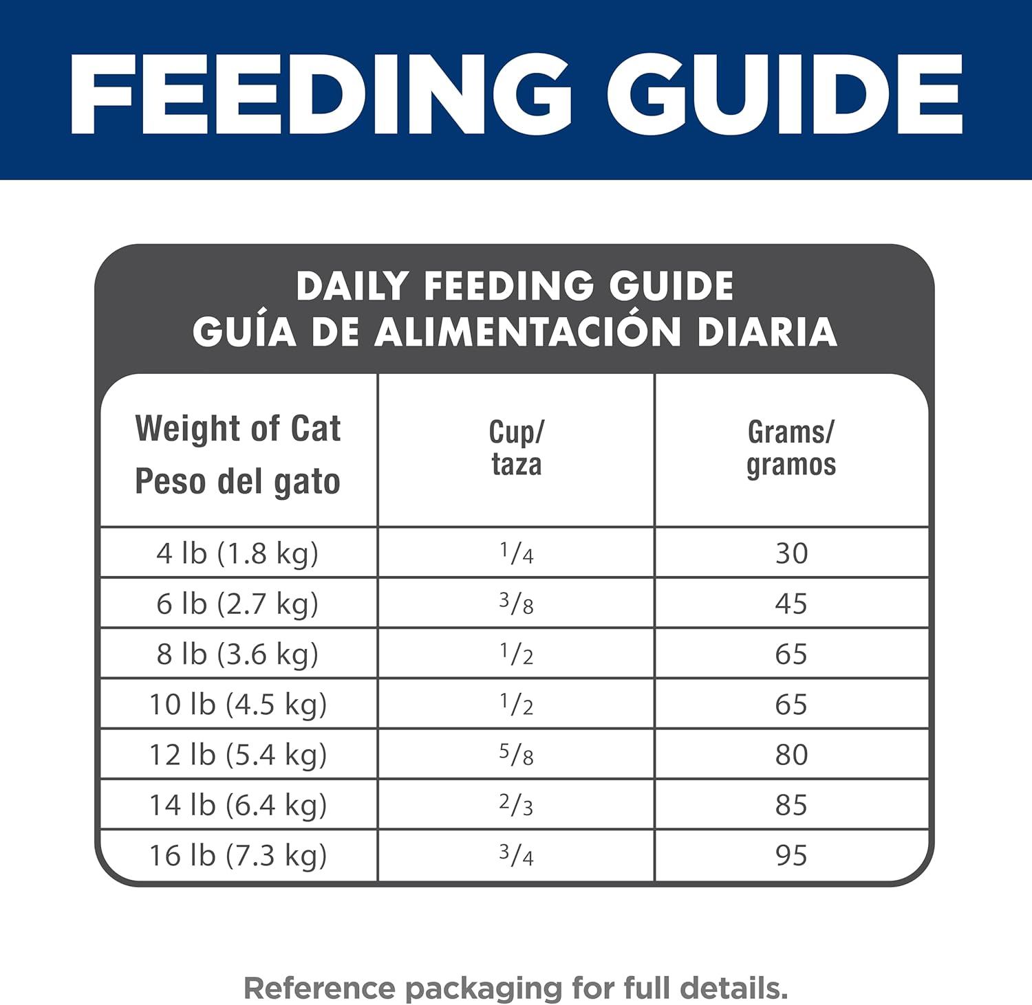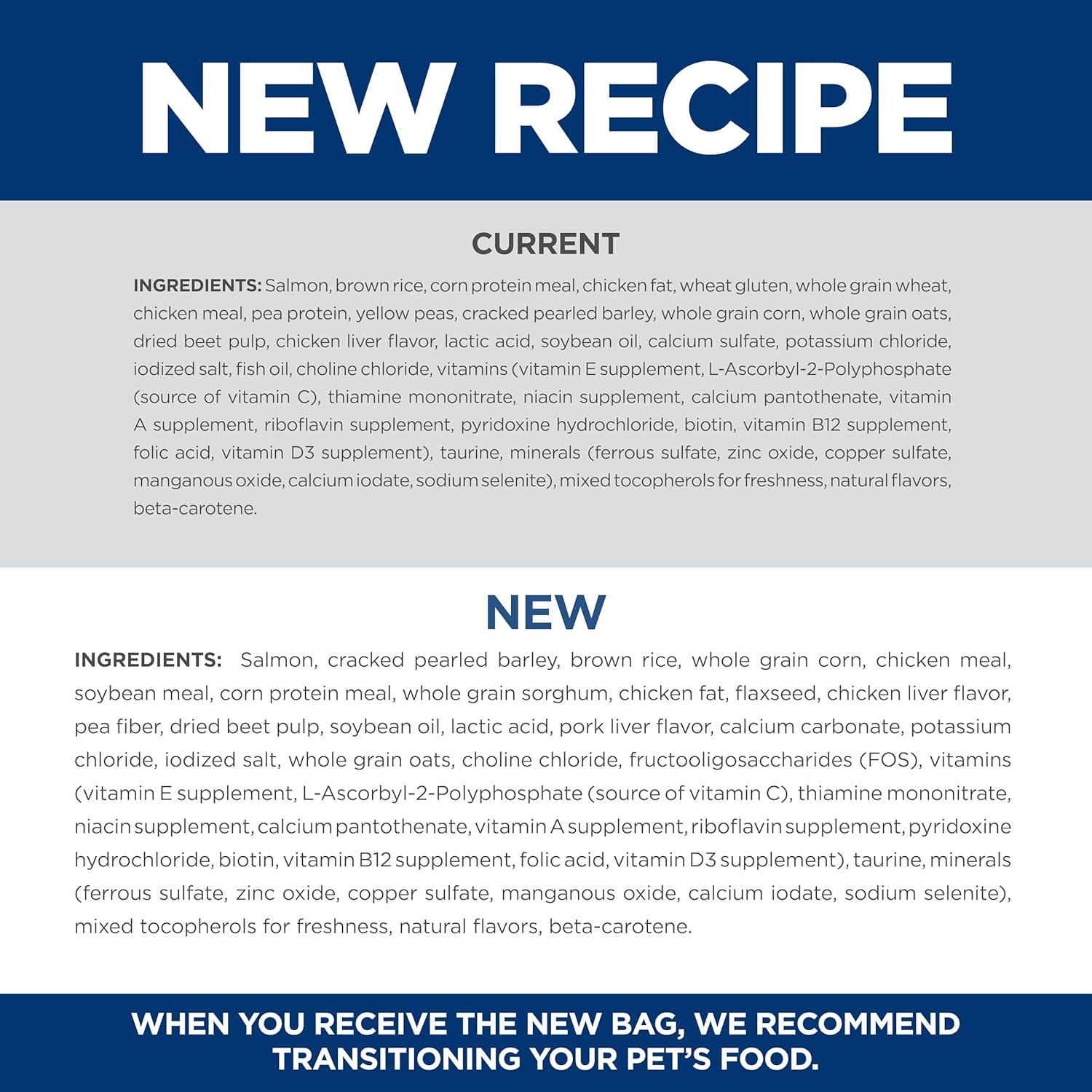 - Directions: Please see package for complete feeding instructions. Adjust feeding amounts as necessary to maintain optimal weight. If you are unsure, ask your veterinarian. New to this food? Mix increasing amounts of your pet's new food with decreasing amounts of the old food over a 7 day period. Keep fresh water available at all times! Your pet's nutritional needs may change as they age. Ask your vet at every checkup.