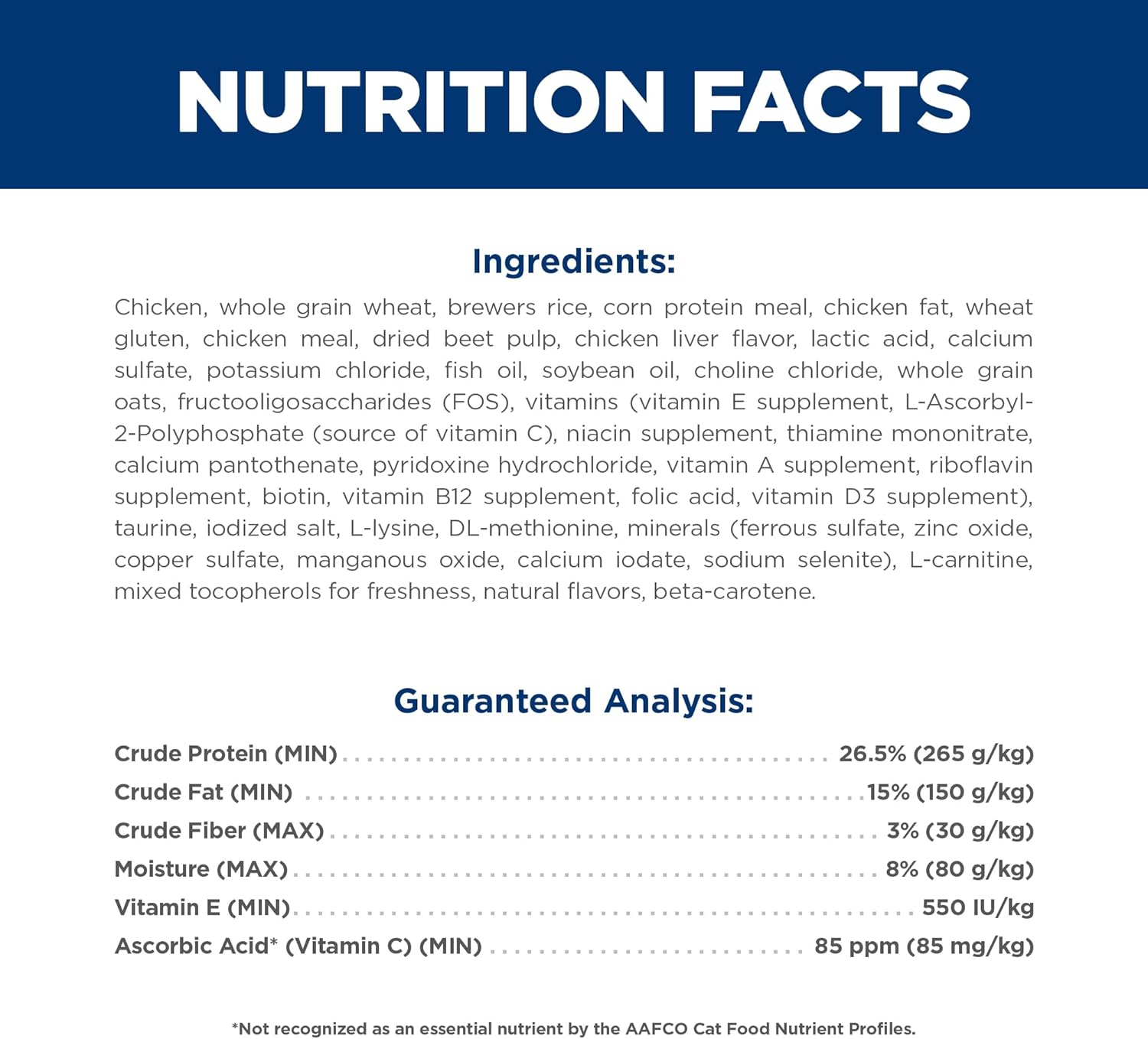 Product Description Just because your cat is getting older, it doesn't mean they're out of the game. Hill's Science Diet Adult 7+ dry cat food supports graceful aging in cats, providing a synergistic ingredient blend that supports the energy & activity level in older felines. This mature cat food made with natural ingredients provides cats 7 years and older with taurine: an essential component for heart health. Balanced minerals promote bladder and kidney health, while vitamin E, omega-3 and omega-6 fatty acids support healthy skin and fur. Because aging cats can have more sensitive stomachs, this premium pet food is made from easy-to-digest ingredients. There’s more to love with the new look of Science Diet. Some of our products also have new names, new kibble shapes & new formulas. From the Manufacturer Hill’s Pet Nutrition’s Mission: To help enrich and lengthen the special relationships between people and their pets. More than 220 veterinarians, food scientists, technicians and Ph.D. nutritionists at Hill's develop all of Hill's pet foods to meet the needs of your pets. Hill’s only accepts ingredients from suppliers whose facilities meet stringent quality standards and who are approved by Hill's. Not only is each ingredient examined to ensure its safety, we also analyze each product's ingredient profile for essential nutrients to ensure your pet gets the stringent, precise formulation they need. Hill’s uses only high-quality ingredients including real chicken, lamb or salmon protein. Hill’s dry pet foods have quality protein as the first ingredient and provide clinically proven antioxidant benefits. Plus, they’re made with natural ingredients (plus vitamins, minerals & amino acids) and never contain artificial colors, flavors, preservatives or chicken by-product meal. Hill’s Food, Shelter & Love program donates food to shelters across the country, providing the proper nutrition that helps pets find their way to loving homes. With every purchase of Science Diet you help feed over 100,000 homeless pets every day, 365 days a year.
