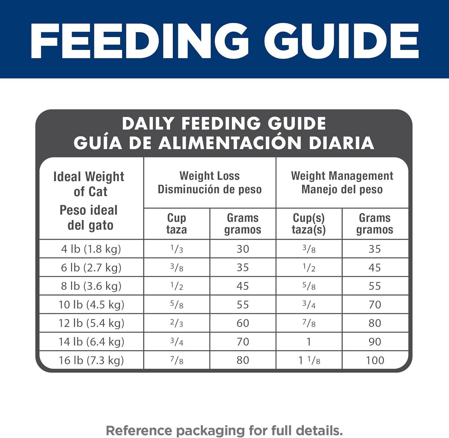 - Directions: Please see package for complete feeding instructions. Adjust feeding amounts as necessary to maintain optimal weight. If you are unsure, ask your veterinarian. New to this food? Mix increasing amounts of your pet's new food with decreasing amounts of the old food over a 7 day period. Keep fresh water available at all times! Your pet's nutritional needs may change as they age. Ask your vet at every checkup.