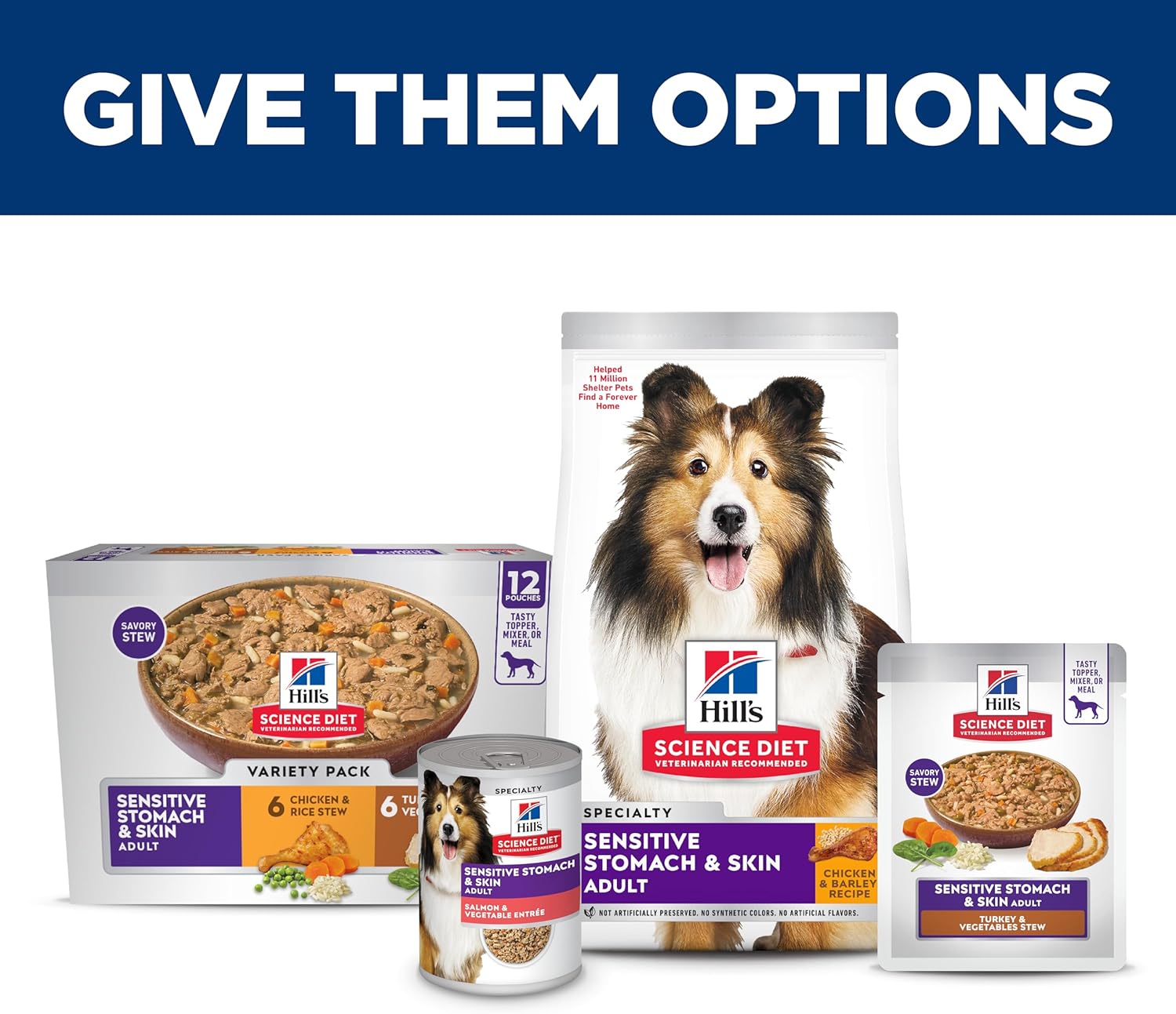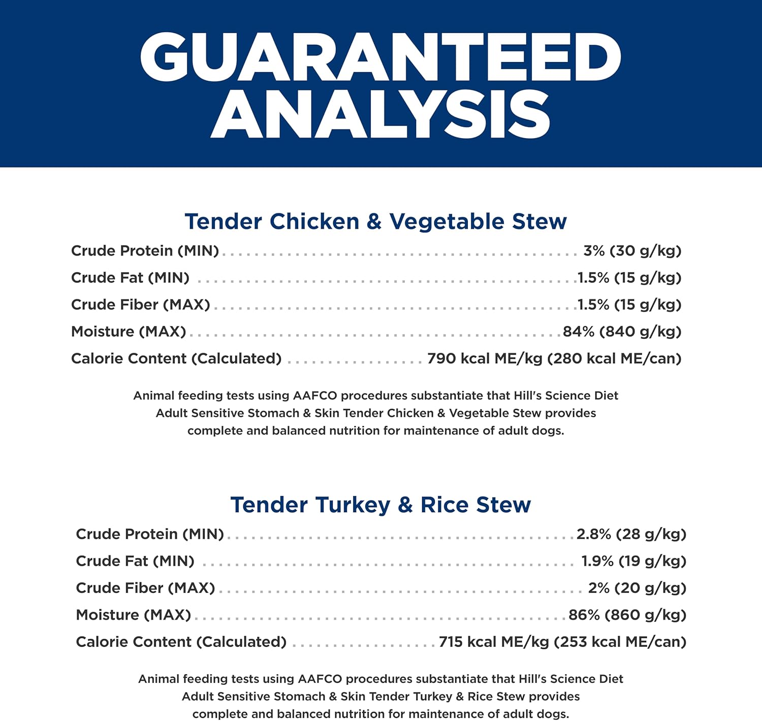 You want your grown dog to feel good inside and out. That's why Hill's Science Diet Adult Sensitive Stomach & Skin Tender Turkey & Rice Stew is specially formulated for optimal digestive and skin health. Made with vitamin E and omega-6s to nourish your adult dog's skin and coat, this easily digestible dog food made with natural ingredients promotes better canine stomach health, as well as easier stool pickup. This mouthwatering, slow-cooked stew for dogs comes in a delicious turkey flavor that will send your pet running for their bowl during mealtime. There’s more to love with the new look of Science Diet. Some of our products also have new names & new formulas.