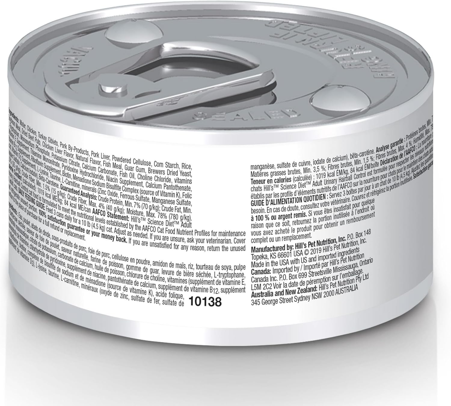 - Directions: Open a can and serve the contents to your cat. Feeding amounts vary by cat's weight for cats weighing 1-2.5 lbs, provide 2 tablespoons per day; 2.6-5.5 1/4 5.6-16 1/2 over 16 3/4 day. Adjust feeding as necessary maintain optimal weight. If you are unsure, ask veterinarian. New this food? Mix increasing of pet's new food with decreasing old 7 day period. Keep fresh water available at all times! Your nutritional needs may change they age. Ask vet every checkup. For full instructions, refer packaging 'Hill's Science Diet Adult Urinary & Hairball Control Savory Chicken Canned Cat Food'.