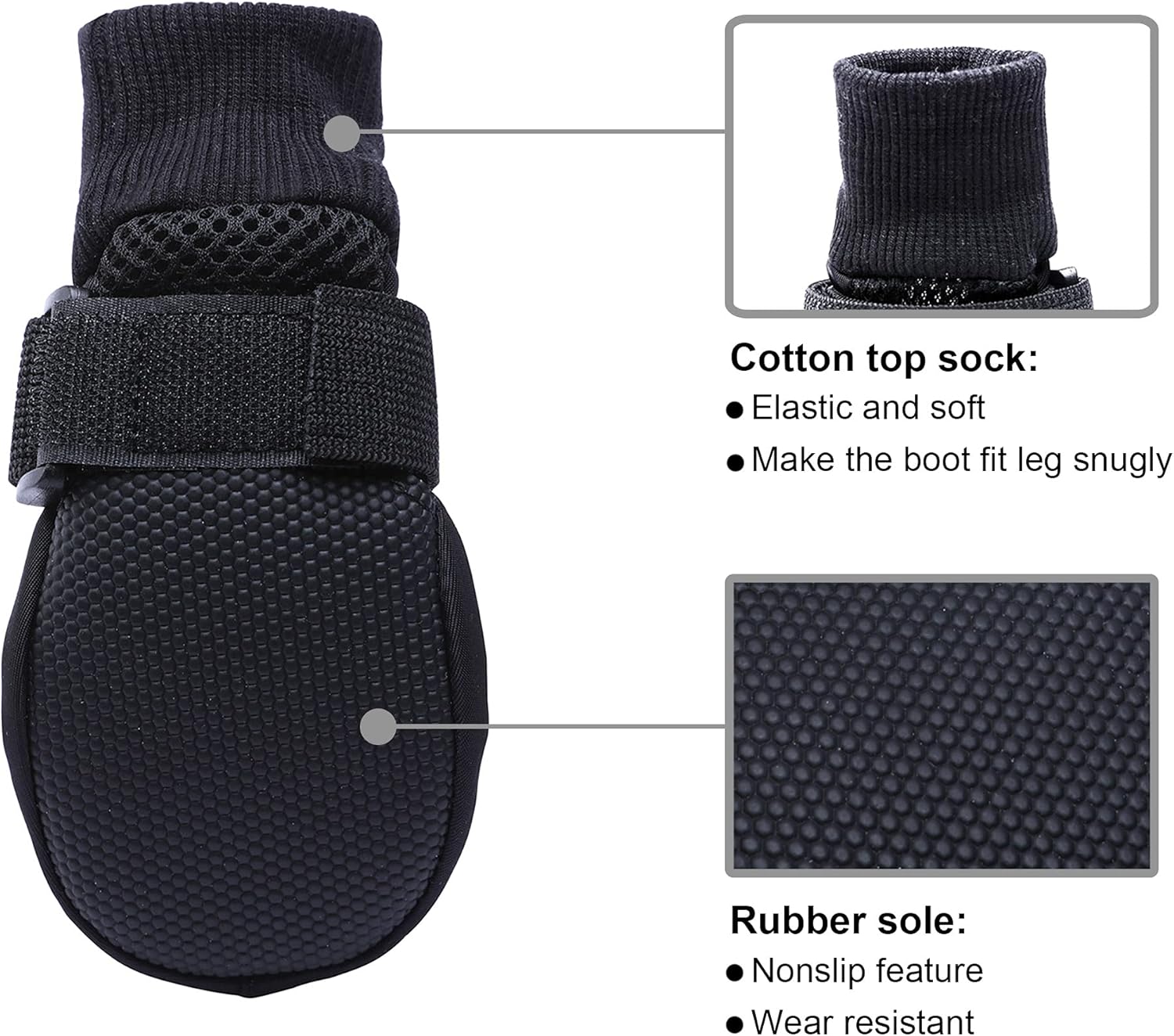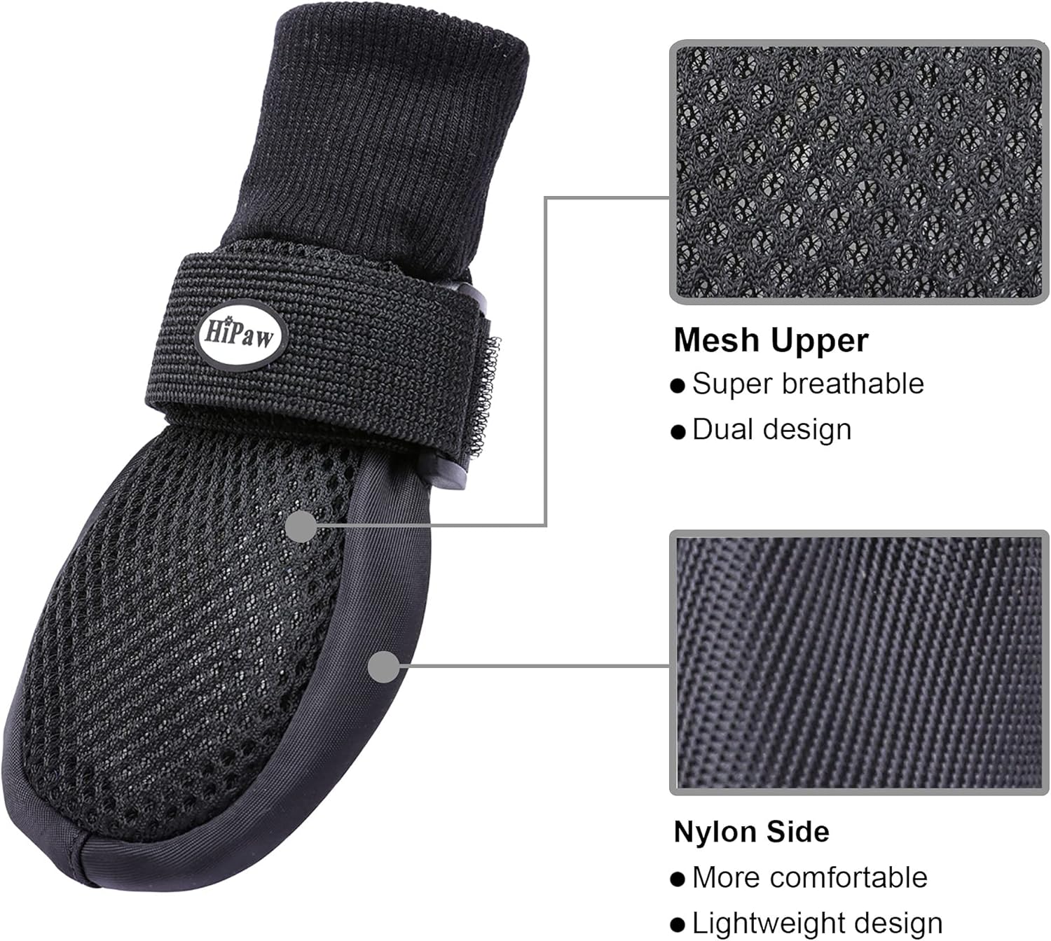 About this item Paw Protectors:Hipaw dog boots protect Your Pup’s Paws from hot pavement,hot asphalt, sharp rocks, and debris. Great for indoor, hardwood floor, lawn, daily walking.keeping paws clean, dry, cool,and safe! Suitable for Medium and Large breed dogs,Not for Small breed dogs Comfortable & Breathable Design: The breathable air-mesh dog boots keep paws cool and dry with maximum airflow. Lightweight and flexible, they move naturally with your dog’s paws Non-Slip Soft Sole: Provides flexible, all-day comfort. Prevents slips and ensures safe, happy walks Stop Licking & Speed Up Healing: If your pet has a paw injury, they may try to lick or scratch at it. These dog shoes boots will stop scratching/licking while allowing airflow for faster recovery Easy to Put On & Stays Secure: Elastic straps give a snug, adjustable fit that locks dog booties in place—even during active play or running. Hand washable/Machine washable. Each Set Includes all 4 Booties › See more product details