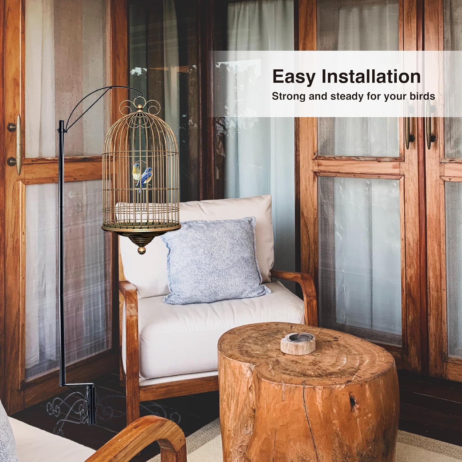 About this item HOHIYA bird cage stands with stunning vintage look and black power coated finish will add elegance and beauty to your garden. Bird Cage Stands STURDY and DURABLE Its made of high quality, free standing hanger is made of iron steel structure with a double black powder-coated finish, optimal durability and sturdy. MULTI PURPOSE hanging bird cage stand is great for outdoor wedding aisle and hanging a variety of items, such as signs, flower baskets, flower balls, bird feeders, wind chimes, plant hangers, lanterns, mason jars, ornaments, bird baths, planters, shooting targets, isle marker and so on. Meanwhile, garden hooks keeper is also suitable for camping or even cemetery decoration 61 INCHES TALL: Iron bird cage stand, not include bird cage. It is 61 inches tall, assembly required and Made in Taiwan. SATISFACTION GUARANTEE Trend HOHIYA is committed to providing you with quality products and impeccable customer service. Please feel free to contact us directly if any issues. › See more product details