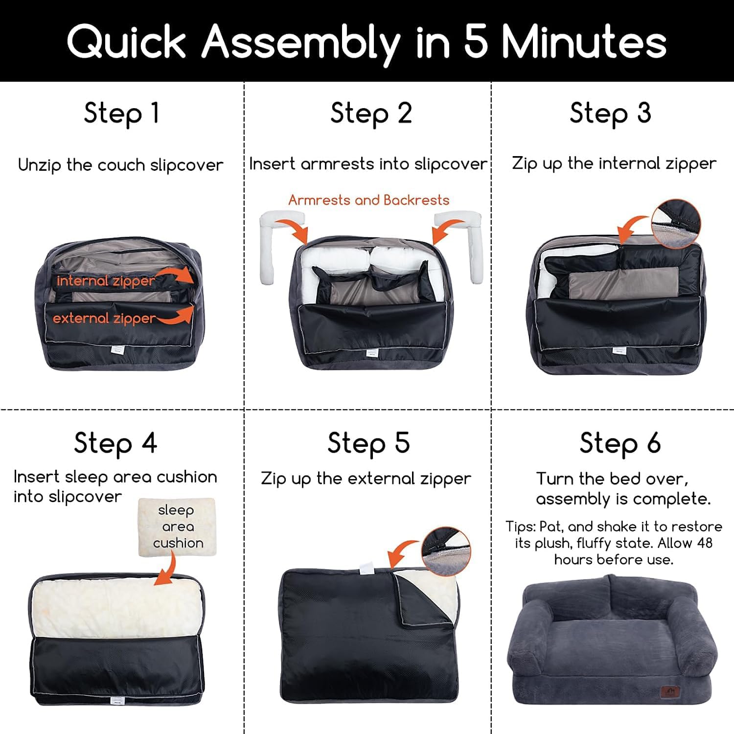About this item Soft Materials - The Hollypet pet couch is crafted with soft materials and filled in PP cotton to ensure durability and comfort for your furry friend. Recommend using it as a pet bed for small dogs and cats up to 25lbs Easy to Clean - Pet accidents happen, so Hollypet made sure the cat couch is easy to clean and maintain. The removable cushion covers are machine washable, allowing you to keep the sofa looking fresh and clean with minimal effort Stylish Design - The Hollypet calming pet sofa couch bed is not only a haven for your pet but also a stylish addition to your home. Its fashion design and soft color options seamlessly blend with any home decor Extra Comfort - Designed for pets who love to curl up, this pet sofa features raised edges that provide a sense of security and support for your pet's head and neck. It offers ultimate comfort and security, promoting a restful sleep for your furry companion Assemble Tips - The Hollypet cat bed will arrive as a vacuum-packed bed in a box, please carefully unpack the cat sofa couch, then pat and rub the compressed areas to make sure the filling is completely fluffy and wait 48 hours before using the pet bed › See more product details