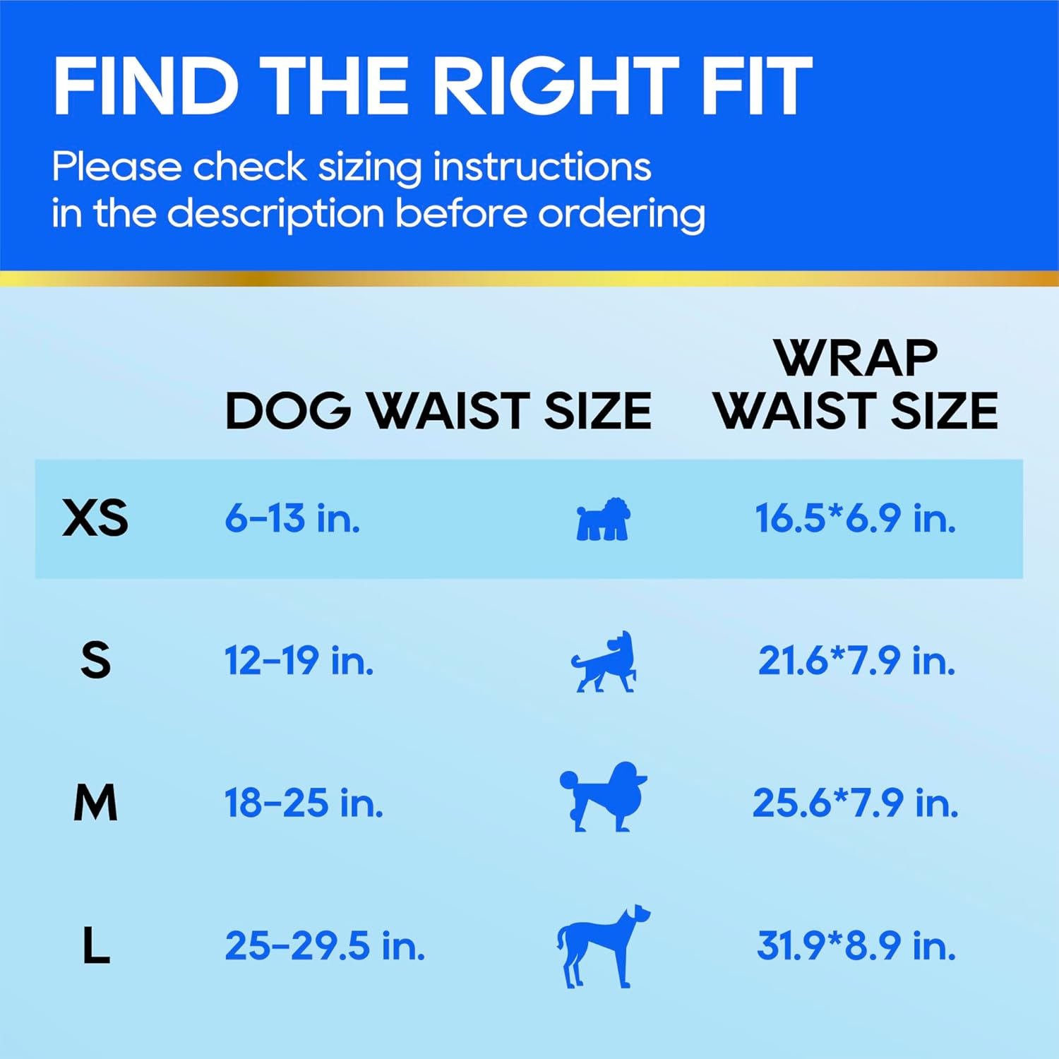 WRAP IT UP- All-Absorb Disposable Male Wraps are designed to fit: -Large-sized male dogs with a 25 - 32 inch waist. -Medium-sized male dogs with a 18 - 25 inch waist. -Small-sized male dogs with a 12 - 18 inch waist. -Extra-Small sized male dogs with a 6 - 13 inch waist. These are guaranteed to keep your little buddy comfy and dry, while helping you maintain peace of mind. RELIEF FOR WHEN HE RELIEVES HIMSELF - All-Absorb Disposable Male Wraps provide much needed protection for male dogs with incontinence, excitable urination, or those who feel compelled to mark things that are clearly not his.