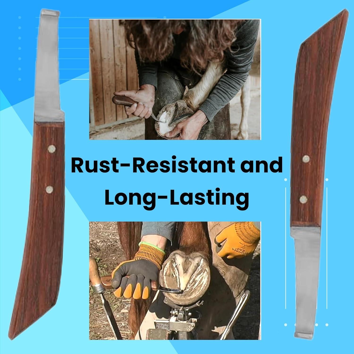 - Included Components: 1 × Stainless Steel Hoof Knife with Wooden Handle