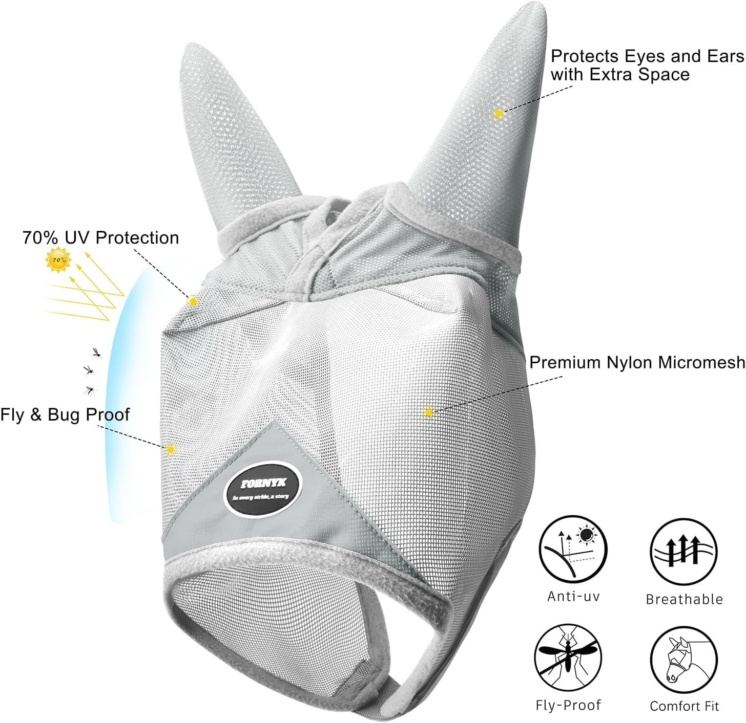 - Included Components: Fornyk fly mask