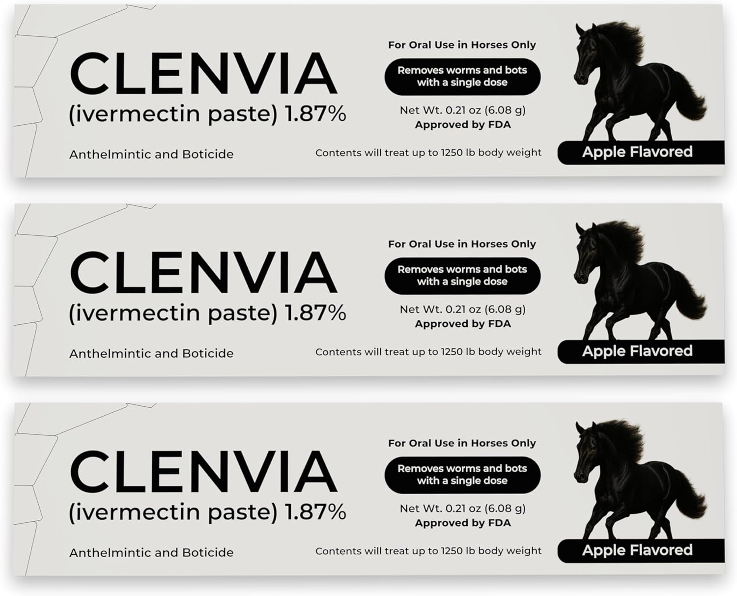 About this item ✔️ Apple-Flavored Gel: Oral gel with apple flavor for ease of use during administration. ✔️ Calibrated Syringe Design: Each syringe includes clear weight markings for adjustable dosing. ✔️ 3-Pack Format: Contains three 6.08g syringes with caps and plunger-based applicators. ✔️ 1.87% Active Ingredient: Formulated with 1.87% active content as indicated on the label. ✔️ For Horses Only: Labeled for equine use only. Use strictly as directed on packaging. › See more product details
