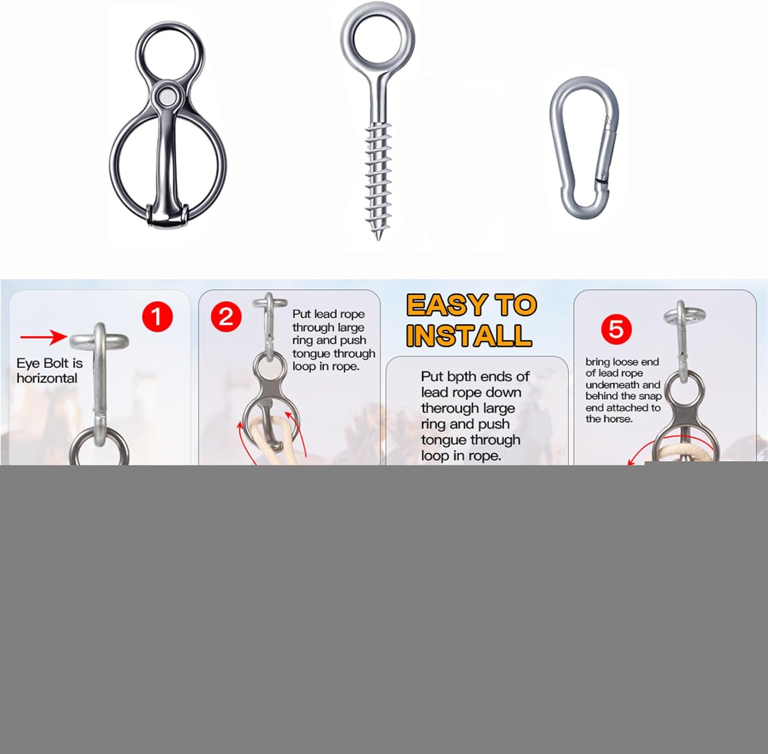 Crafted for durability and functionality, horse tack and supplies made from stainless steel long-lasting performance in both indoor and outdoor environments. Heavy duty design supports reliable training, tying, and retracting activities, while effectively managing pull back and release actions. Ideal for use in a stall or stable, these supplies provide secure handling and adaptability to various equestrian needs. Enhance your horse care routine with equipment designed to meet the demands of daily use without compromising on strength or reliability.horse tie ring Stainless Steel Heavy Duty Training Tying Retracting Pull Back Release horse tack and supplies Indoor Outdoor Stall Stable for Horse Care horse tie ring Steel Heavy Duty Training Tying Retracting Pull Back Release horse tack and supplies Indoor Outdoor Stall Stable for Horse Care SpecificationPackaging size: 15x10x1CM/ 5.91 × 3.94 × 0.39inch: 5.2x1.6inch, double buckle 4.7x2.6inch, single buckle 3.1x1.5inchMaterial: stainless steelListScrew x1+double-head buckle x1+single buckle x1Note:1. Due to lighting effects and display angles, there may be color differences in the product.2. Due to manual measurement, there may be errors in product size, please understand.