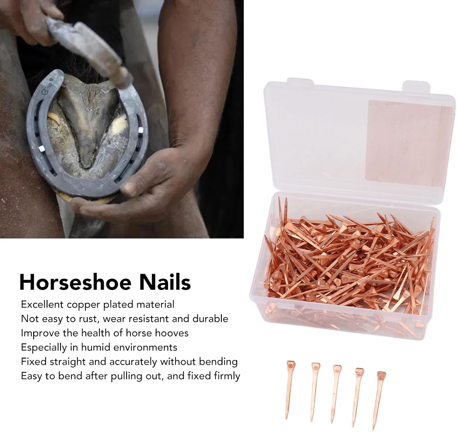 Item Type: Horseshoe NailsScope of Application: Horseshoe nail ridingQuantity: 250PcsApplication: Suitable for normal nails, iron palms can be usedMaterial: Plated CopperPackage List:1 x Storage Box250 x Horseshoe Nails