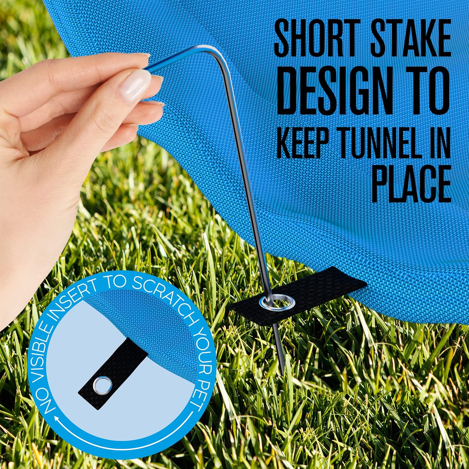 About this item REGULATION SIZE: Regulation size (18” long coiled shape shifting tube with 24” double-ended openings -- AKC and NADAC compliant) dog tube modeled after those found in courses at sanctioned dog events. Recommended for small to mid-sized dogs weighing up to 80-90 pounds (casual use only). DURABLE MATERIAL: This agility dog training tunnel is lined with a covering made from lightweight yet surprisingly durable 600D woven Oxford Dacron. Included in the set are 8-10 anti-rust zinc plated 7” stakes that insert through the metal grommet tabs around the base of the tunnel. The downward angled tops of the stakes are designed to not protrude out of the ground so they don’t cause harm to your dogs while they play. ENDLESS EXERCISE: A tremendous resource for sharpening your dog’s obedience, quickness, dexterity, and overall quality of life. Use our dog tubes and tunnels for casual play, exercise, and introductory training. PORTABLE: Our dog agility tunnels arrive in a circular carrying case with dual nylon black handles at the top for effortless transport. Once removed from the case, the pop up tunnel instantly expands to full length. Quickly collapses and folds back together when you are finished. Set it up inside the home, outside, at your favorite beach, and much more. EASY FUN AFTER A RUFF DAY: Sometimes dogging is ruff, and a pup just needs to run around to shed some stress. Our dog training tunnel is a quick and easy way to create dog backyard play equipment. › See more product details