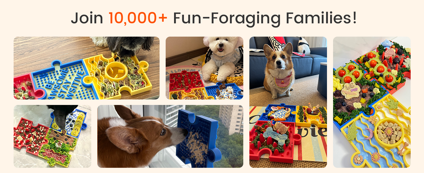 About this item 【Slower Eating, Better Digestion & Dental Care】✨: Unique textured patterns naturally extend licking time up to 10x longer, turning quick meals into slow, healthier feeding. This helps prevent bloating, choking, and vomiting while improving digestion. As dogs lick across the surface, it naturally scrapes away food residue from teeth and tongue, promoting fresher breath and stronger dental health. 【Distraction & Reduce Anxiety】✨: Turn stressful moments into easy ones. Spread your dog’s favorite treat, freeze the mat, and stick it to any smooth surface for a long-lasting licking session. Ideal for grooming, bathing, nail trims, or vet visits. This puzzle lick mat promotes slow eating, reduces boredom, and keeps your pup happily engaged while building healthier mealtime habits. 【Bigger, Deeper, Thicker & Steadier】✨: This puzzle lick mat is built for heavy-duty feeding. Its larger size easily holds a full meal for all breeds dogs or cats, while deeper grooves prevent messy splashes. Reinforced thick edges ensure durability and resist chewing damage. With 38+ powerful suction cups, it stays firmly in place during use—no sliding, no tipping, just stress-free feeding. 【3 Puzzle Mats, Endless Combinations】✨: Designed with interlocking puzzle edges, these mats can be used alone or combined together for large dogs or multi-pet households. The blue mat is ideal for soft foods like yogurt or peanut butter, the yellow mat’s ripple grooves and center bowl hold liquids without spills, while the red mat’s peaks and valleys are designed for locking kibble, jerky, or freeze-dried snacks. 【Food-Grade Silicone】✨: Crafted from BPA-free, this mat is completely safe, odorless, and designed for daily use. The flexible yet durable material withstands long-term licking and freezing without warping. Easy to clean, quick to dry, and safe for both pets and owners. Note: This is not a CHEW TOY! Recommend supervising your dog during use. › See more product details
