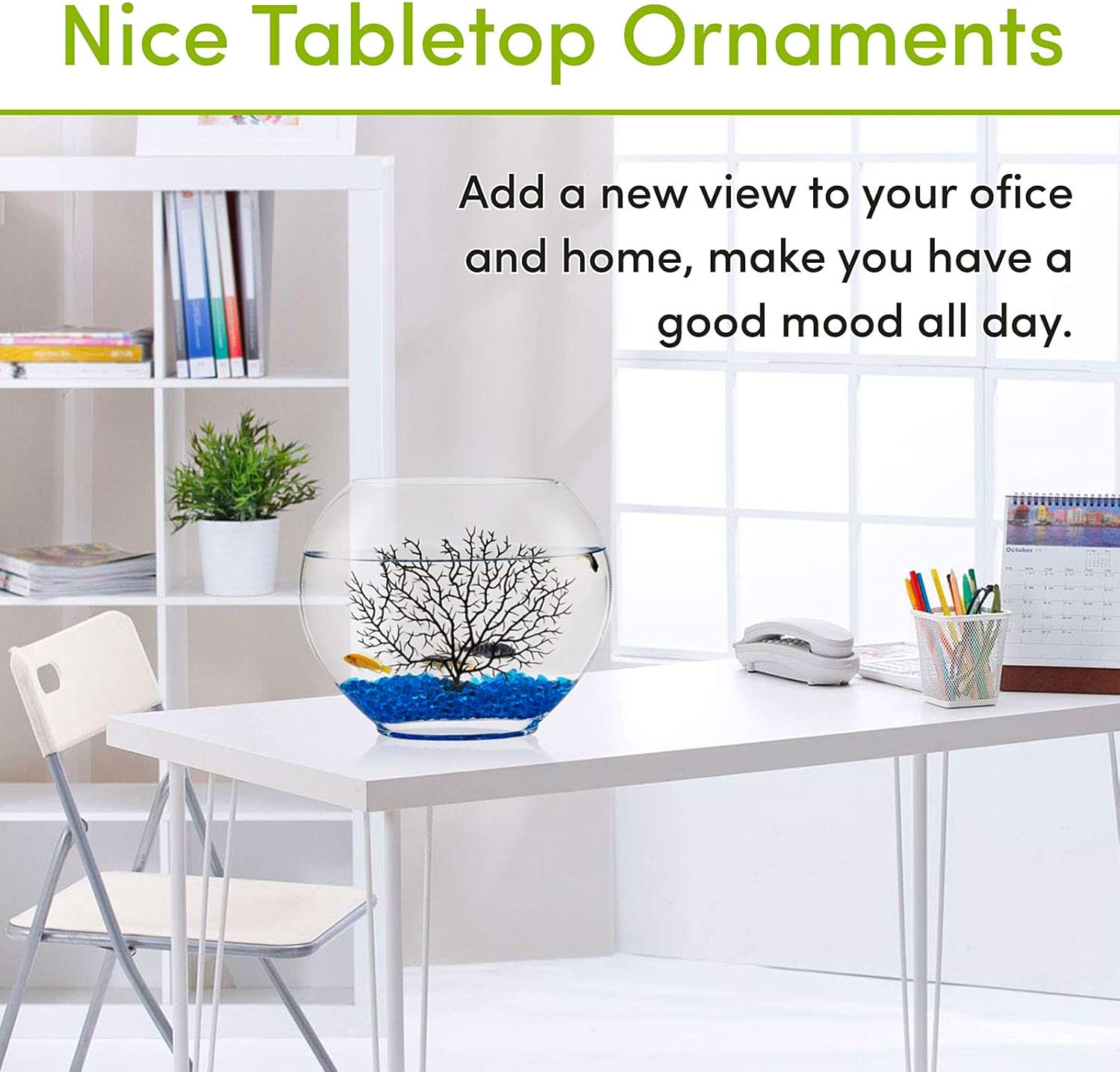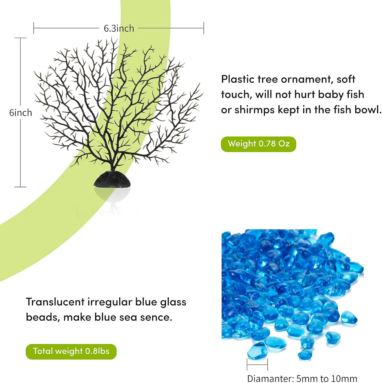 About this item Perfect for home, dorm, office or holiday decoration. Comes with blue glass beads and plastic tree ornament,add 0.5-0.7gallon water into the mini fish tank, also you can add other small ornaments to create different decoration themes The fish bowl kit can be a good choice for birthday or children's day gift, we suggest it for 7-14 years old kids. The small aquarium glass tank suitable for keeping baby fish, small turtle or shrimps, the clear glass is easy for children to observing these animals. Please keep it away from smaller kids under 6 year old,they may break the glass tank and hurt themselves,or accidentally swallow the blue glass beads Such an attractive fish bowl placed on the table of your room or office will make you feel good and relaxed in the busy day. When any time you look at the fish bowl and fish in it, your eyes will get a rest Good crystal-clear clarity make a panoramic view for all things in the fish bowl. The glass thickness is about 4mm,it's not easy to break.The glass fish tank is easy to clean with water Oblate shape fish bowl, it's 9.05inch in height, 7.28inch in longer diameter, 3.43inch in shorter diameter. The glass aquarium fish bowl will not take much space, you can place it on the table, windowsill, shelf or anywhere you can see at first sight › See more product details