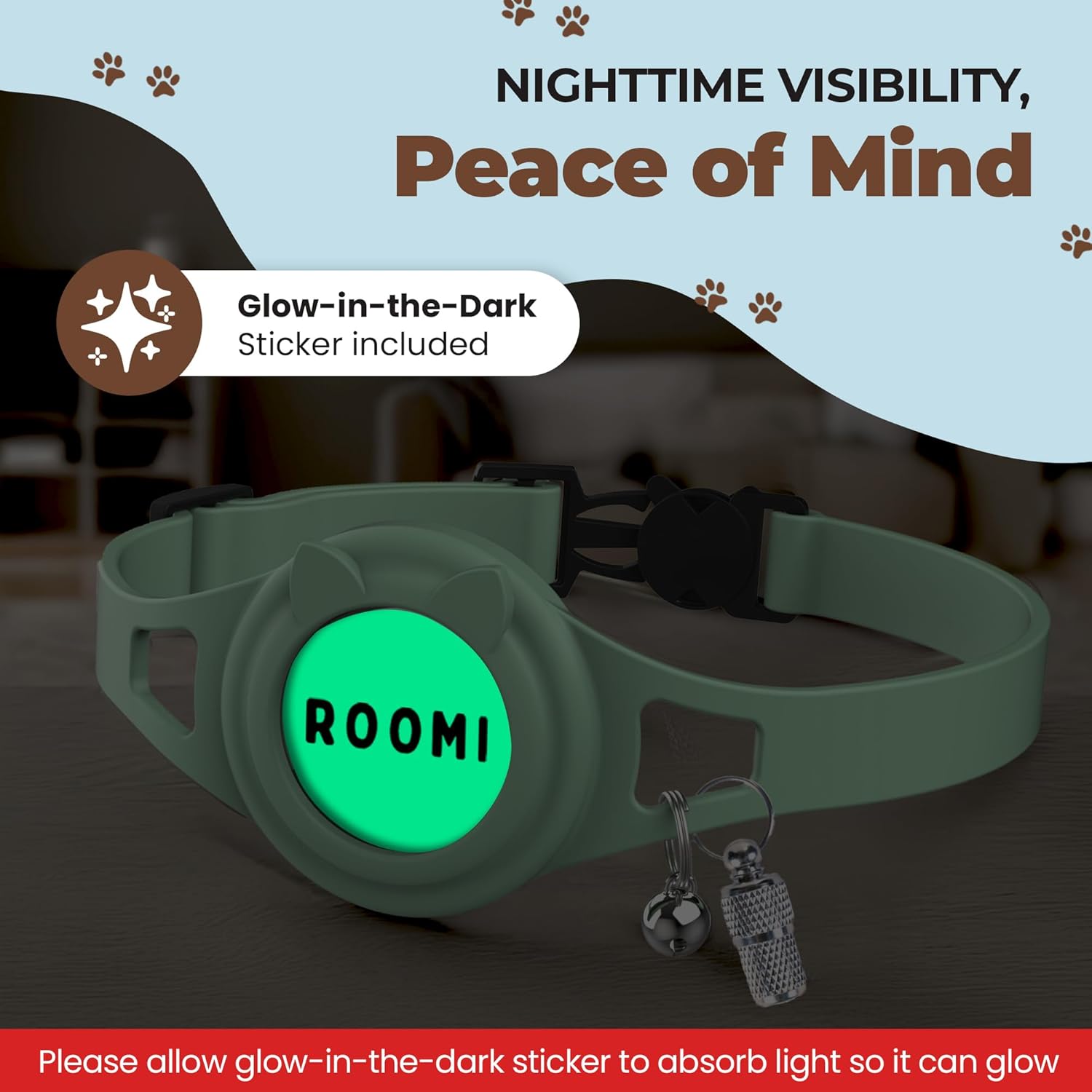 About this item SKIN FRIENDLY - Ensure your furry friend stays comfortable with our Durable & Waterproof hypoallergenic Apple AirTag cat collar. Designed with your cat's well-being in mind, our lightweight cat collar airtag holder guarantees zero irritation, making it the perfect choice for sensitive cats. GLOW IN THE DARK – Our AirTag cat collar comes with a bonus glow in the dark sticker, making it easier to spot your cat in low-light conditions. Simply stick it onto the Apple AirTag for extra visibility at night! INTEGRATED AIRTAG CAT COLLAR - Don’t risk losing your feline companion by using an average collar. Our cat collar with Airtag holder features an integrated AirTag holder to keep your Apple Airtag secure and Waterproof, ensuring your pet’s safety and your peace of mind. BREAKAWAY CAT COLLAR - Safety first! Cats need an Apple AirTag cat collar with a breakaway clasp to prevent accidents. Our cat Airtag collar is designed with safety in mind, reducing the risk of suffocation if your cat gets caught on an object. STRESS FREE - We make tracking simple. No need to worry about measurements—our Airtag cat collar holder is fully adjustable to fit cats and kittens of all sizes. With our Apple AirTag cat collar, keeping your pet safe has never been this easy. EASY TO USE - Say goodbye to the stress of losing your cat! Our tear-resistant cat airtag collar is designed to help you track every step. Place your AirTag into the secure slot located on the centre of the Apple Airtag cat collar and stay connected to your cat, no matter where they roam. › See more product details