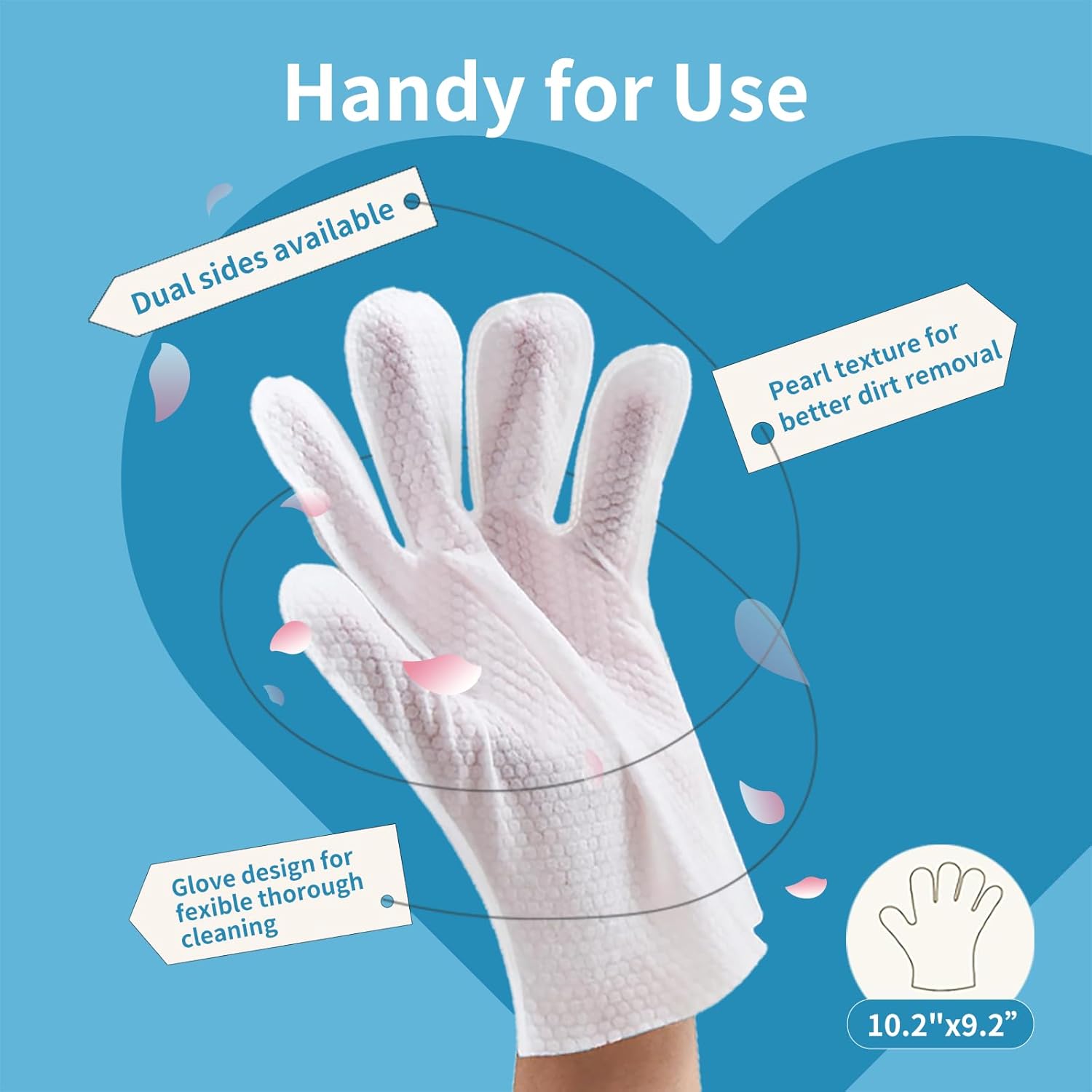 Gentle Cleaning & Healthy Fur Care: These dog cleaning wipes are formulated with 4 natural extracts: organic fermented coconut oil, aloe vera, oat extract, and pure water. Effectively cleans & deodorizes while nourishing and smoothing fur. Enhances fur resistance, supports skin health, and reduces fur problems Efficient Wipes For All Pet Body Parts: Effortlessly remove dirt from paws, wipe tear stains as gentle dog eye wipes, and refresh entire bodies. Replaces specialized tools like dog teeth cleaning wipes and pet dental finger wipes for dogs—no need for separate products per area Odor Neutralizing with Coconut Power: These Dog Cleaning Wipes utilize plant-derived coconut oil to break down organic odors(like muddy paws or litter box smells) at the source. Delivers powerful dog wipes cleaning deodorizing action, neutralizing stubborn odors between grooming sessions Pet Gloves with Deep-Clean Texture: Dual-sided pearl-textured surface reaches deep-clean grooves in paw pads and ear folds for enhanced use. Provides gentle massage stimulation to relax pets during grooming. Tear-resistant dual-layer fabric withstands rigorous use. A reusable solution replacing pet wipes for dogs, paw wipes for dogs, and pet wipes for cats Pet's Perfect Travel Buddy: 6 wrapped pet grooming gloves stay moist 24 months. While traditional pet wipes require large packaging, our compact design fits backpacks, car consoles or litter box cabinets—making dog wipes cleaning instantly accessible anywhere › See more product details