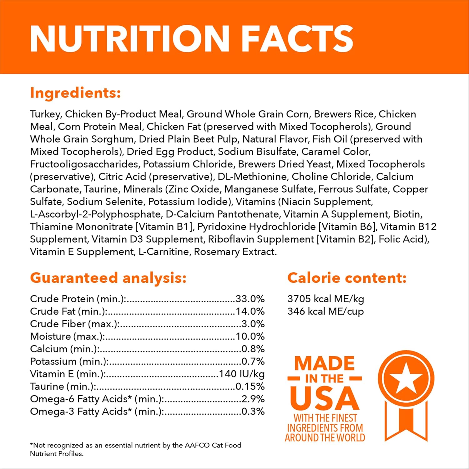 Mealtime matters. IAMS Proactive Health Adult Sensitive Digestion & Skin Dry Cat Food with Turkey is an everyday meal that’s 100% complete and balanced to help adult cats stay on the path to health. This wholesome, tasty dry cat food sensitive stomach recipe is made with real turkey and healthy ingredients that provide essential nutrients for your adult cat. These essential nutrients, like potassium and calcium, can help nourish a healthy heart for your feline friend. As an added benefit, Omega 6 and 3 fatty acids in this adult cat food help nourish your cat’s skin, and promote a glossy, vibrant coat. Veterinarians recommend IAMS cat food. The IAMS cat food sensitive stomach recipe to help support healthy digestion. Help keep your cat healthy, happy, and playful for life with tailored nutrition from IAMS cat food.