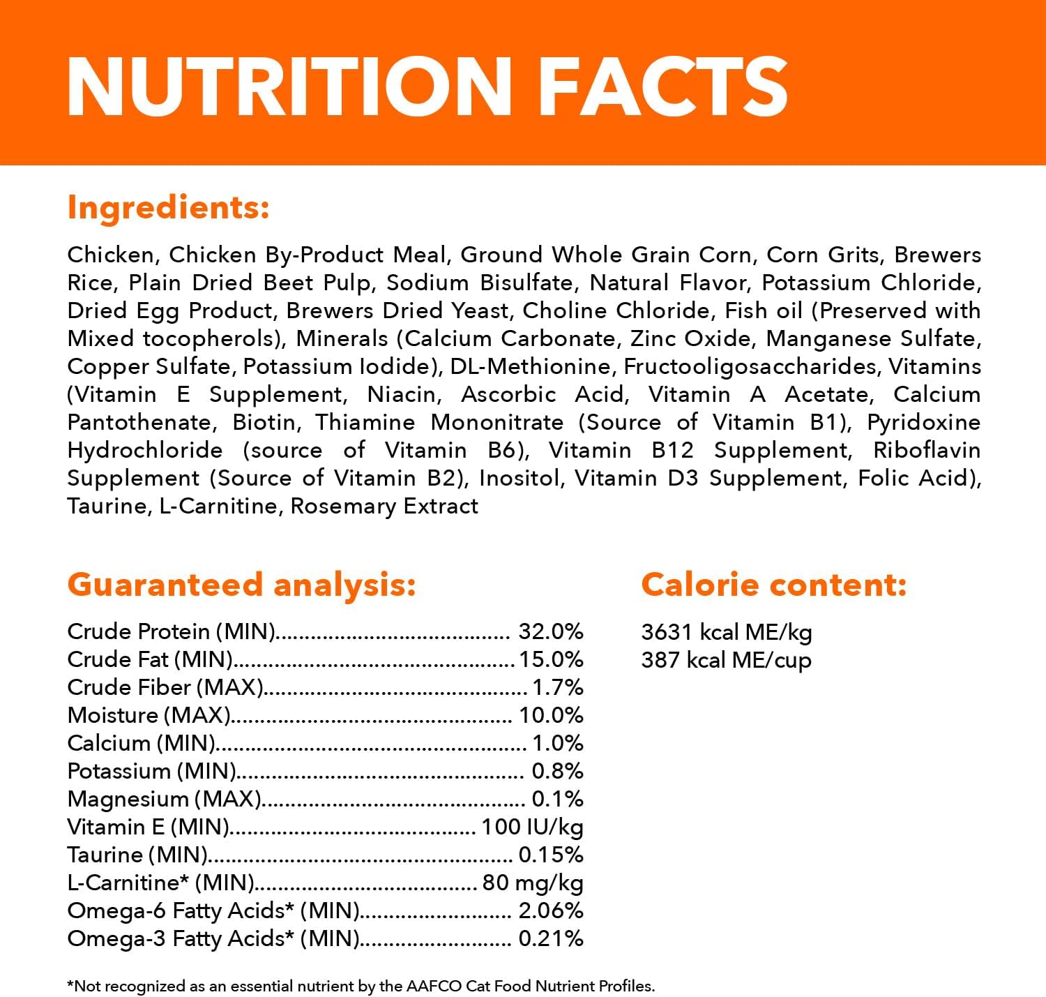 Mealtime matters. IAMS Proactive Health Healthy Adult Urinary Tract Cat Food with Chicken is an everyday meal that’s 100% complete and balanced to help adult cats stay on the path to health. This wholesome, tasty cat food recipe is made with real chicken and healthy ingredients that provide essential nutrients for your adult cat. These essential nutrients, like potassium and calcium, can help nourish a healthy heart for your feline friend. As an added benefit, Omega 6 and 3 fatty acids in this adult cat food help nourish your cat’s skin, and promote a glossy, vibrant coat. Help keep your cat healthy, happy, and playful for life with tailored nutrition from IAMS cat food.
