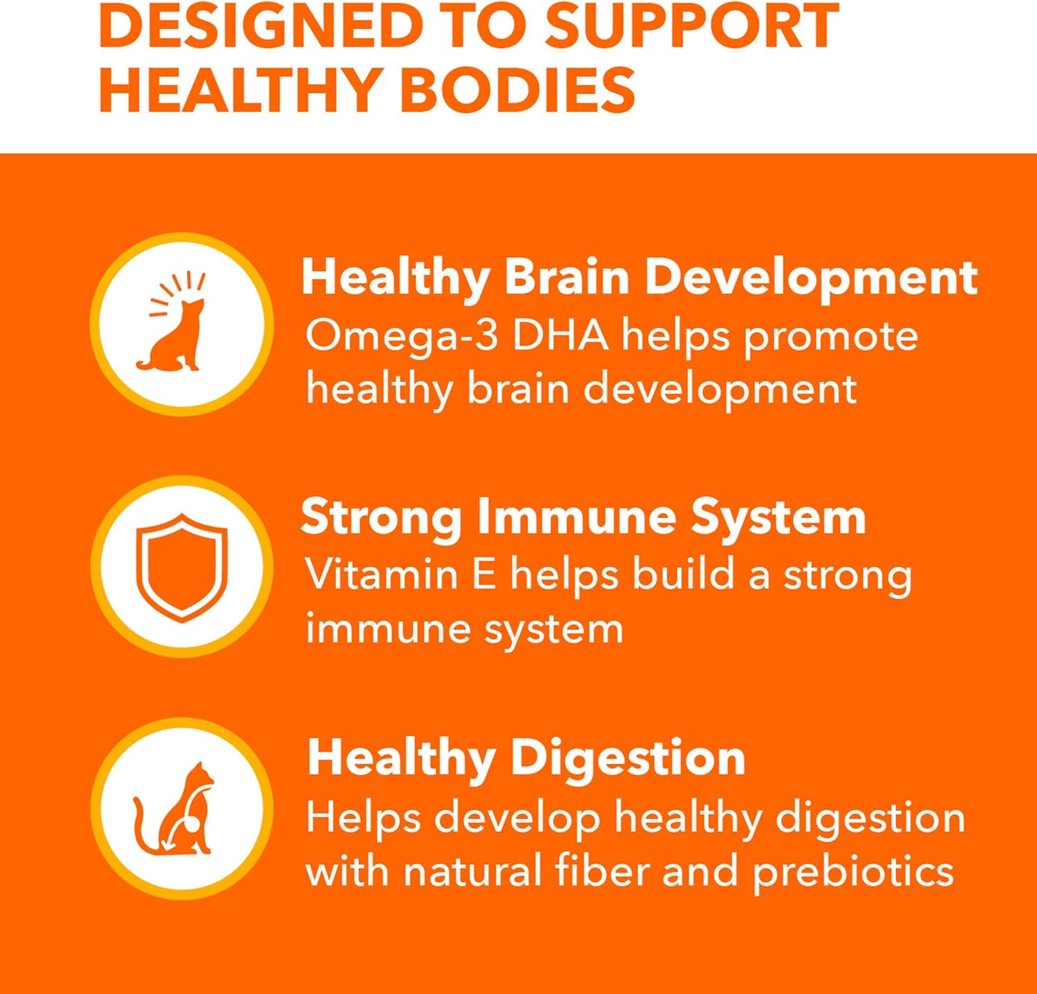 Mealtime matters. IAMS Proactive Health Healthy Kitten Food with Chicken is an everyday meal that’s 100% complete and balanced to help kittens stay on the path to health. This wholesome, tasty cat food recipe is made with real chicken and healthy ingredients that provide essential nutrients for your kitten. These essential nutrients, like potassium and calcium, can help nourish a healthy heart for your growing kitten. As an added benefit, Omega 6 and 3 fatty acids in this cat food help nourish your kitten's skin, and promote a glossy, vibrant coat. Veterinarians recommend IAMS cat food. IAMS cat food supports your kitten at every stage of life. Help keep your kitten healthy, happy, and playful for life with tailored nutrition from IAMS cat food.