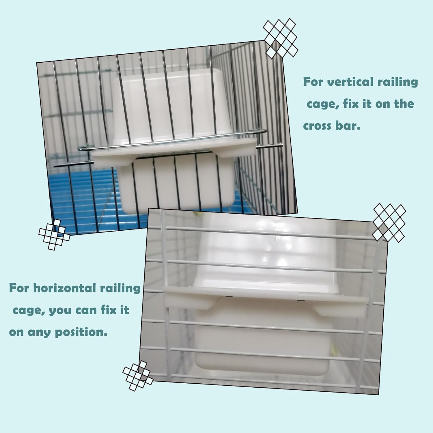 About this item Bird feeder for cage – These clear bird bowls for cage are great for parakeets and canaries. Having a lid on them helps to keep them from throwing seeds all over or least cuts down on and to resolve the problem of wasted seed. Easy to Install and perfect size - Fits standard cage openings. Just put them on through the cage doors. The parakeet feeder is easy to attach and detach. Details of measurement can be referred from the pic. Clear parakeet feeder – Made of clear premium PP, these are very sturdy and easy to clean. Allow you to see your birds while they are eating or drinking. The bird cage feeders are good replacement cups for cage. Package includes – 2 * bird cage feeder and 1 pcs parakeet perch extra. Packed well. Care instruction – Hand wash is recommended. › See more product details