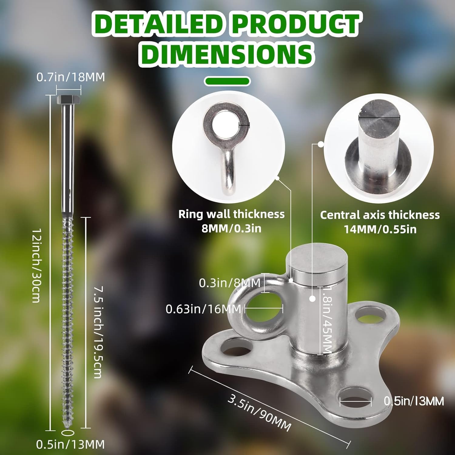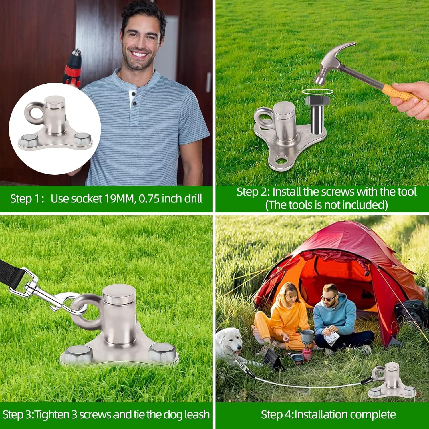 About this item RELIABLE QUALITY - This dog stake is made of 304 stainless steel and alloy steel to withstand harsh weather. - Well protected from rust, the screw anchor upgrade is 12 inches long and 0.5 inches in diameter, holds firmly when screwed into stable ground Maintains 600 lb. draw force. LATCH CONSTRUCTION - UNIQUE DESIGN. This kind of dog stake uses a 0.55-inch shaft to pass through the swivel ring. The swivel ring is cast in one piece without welding, which can resist strong dogs pulling the swivel ring and will not fall off. Easy to install - All you need is a hammer or a cordless drill and three 12-inch screw anchors into hard ground to secure the swivel base. You can easily remove this dog bollard by rotating it off the ground. Versatility - Wide range of applications, can also be a heavy duty ground anchor for swing sets, trampolines, dog houses, camping tents, RV awning side covers and more. BUY WITH NO WORRY - Superior quality is what we promise If for any reason you decide this dog stake isn't for you, Within 30 days send 1 simple email and get a 100% refund, ikleone is committed to serving every customer. › See more product details