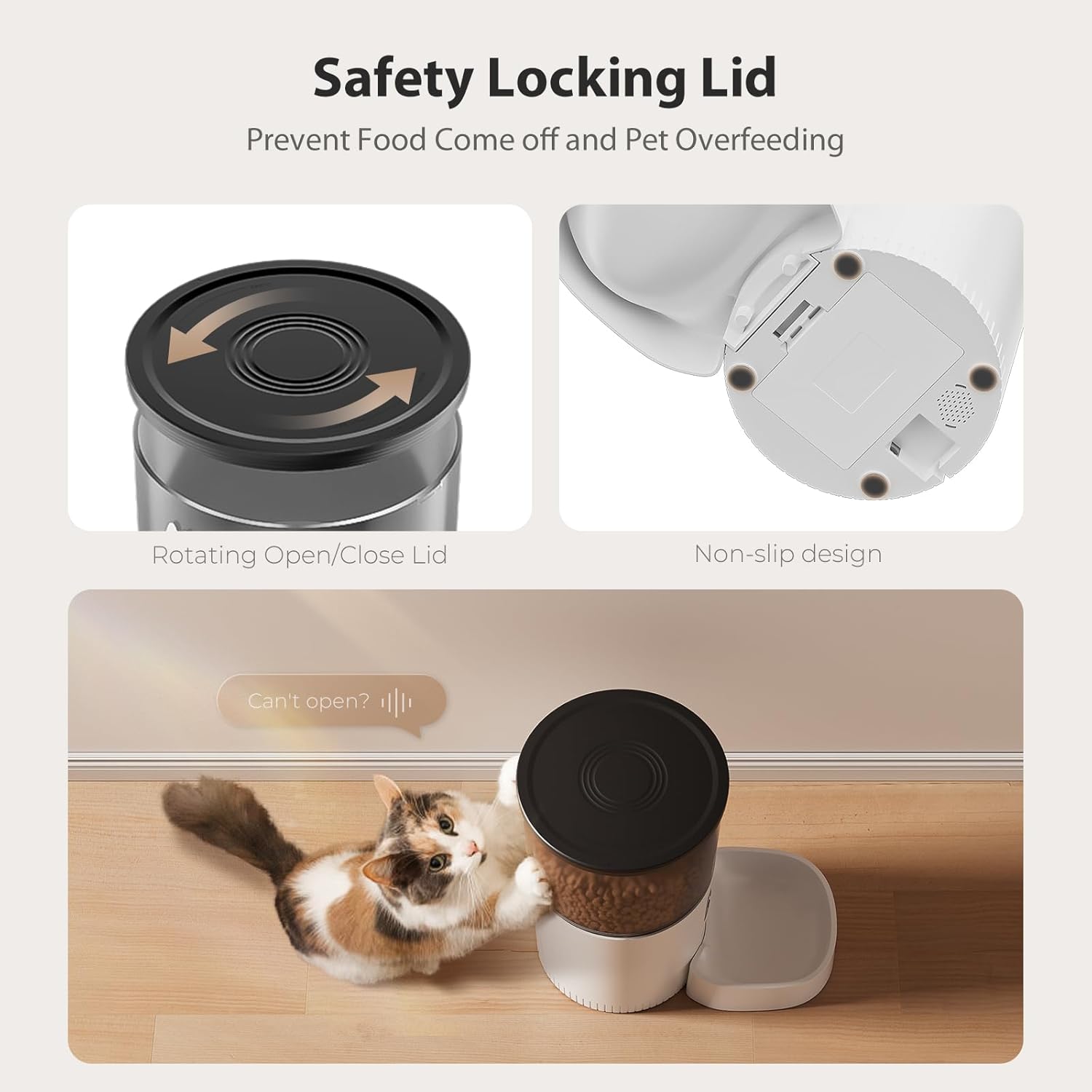 About this item Programmable Timed Feeding: The IMIPAW Automatic Cat Feeders helps you create a personalized, healthy feeding schedule for your pet. The 12-hour clock is easy to program and understand. You can set up multiple meals per day, and set up as many servings as your pet needs (1 serving is 7-9 grams) Easy to Use & Maintain: IMIPAW Auto Cat Feeder inbuilt LCD screen allows quick setup and press both UP & DOWN together to manually dispense 1 portion; Proper angle so that food will not accumulate in the food outlet, and the cat food tray are removable for cleaning. The secure lid lock design prevents pets from getting food Appropriate Capacity food Storage: The 3L/12 cup (1 cup = 16 tbsp) food storage will keep most pets comfortably fed for several days. The automatic cat food dispenser easily feeds your cat or puppy during long weekends and short business trips. Keep your pet well-fed, happy, and giving you peace of mind Dual Power Supply & Anti-Clogging Design. 5V DC adapter + 3 alkaline D-cell batteries (NOT INCLUDED), our automatic pet feeder for medium and small pets adopted the latest power system to prevent power outages, thus ensuring a constant food supply for your beloved pets Satisfaction Guaranteed: We always try to make sure you get the best quality and strive to ensure user comfort and satisfaction. If you have any problems while using this timed cat feeder, please contact us for specific instructions › See more product details
