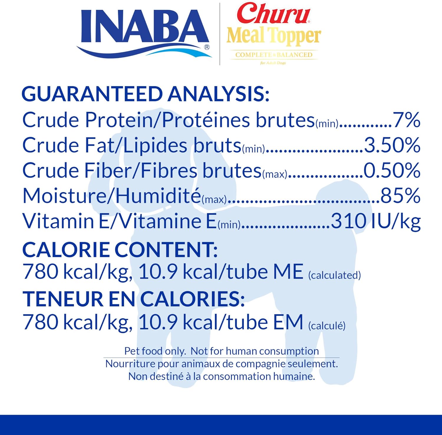 Here at INABA, we know your dog is an beloved family member. That's why our Churu Meal Toppers for Dogs are made from high-quality ingredients, including wild-caught tuna and/or farm-raised chicken. These are a brand-new, completely balanced Churu for your dog to crave. We've taken the same creamy purée texture they love and packed it with vitamins, like Vitamin E and B12, and minerals, like Calcium, making it something that you can feed as a food or add as a topper. And we've kept it grain-free, preservative-free, carrageenan-free and free from artificial colors. then we've wrapped it up in a single-serve 0.5 ounce tube, which means you can still hand feed it to your pooch, if that's how they prefer to consume Churu. Add a squeeze to their kibble bowl and you're helping add additional hydration (85% moisture) and only adding about 11 calories per serving. Perfect as a snack to pack with you on walks to the park or hiking the trails. Churu Meal Toppers can also be used to hid or disguise medications. Available in two sizes and seven different flavors- perfect for dogs of all ages. INABA Churu Meal Toppers for Dogs make meal time or snack time fun for you and your dogs.