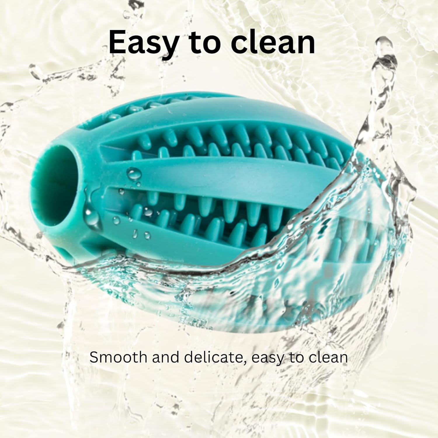 FGenix Indestructible Dog Toy Ball (Pack of 2 – Blue & Orange) Bring fun, health, and intelligence to your furry friend with the FGenix Natural Rubber Dog Toy Balls. This Pack of 2 includes bright blue and orange chew balls made from high-quality, pet-safe TPR rubber — tough enough for aggressive chewers yet gentle on gums. 🦷 Molar Bump Design for Dental Care Each ball features dense molar bumps and interlacing teeth structures that help massage your dog’s gums and support dental cleaning during play. While your dog chews and plays, the unique design helps reduce plaque buildup and promotes better oral hygiene. 🍖 Hidden Food & Slow Feeding Design The interior perforated design allows you to hide treats or kibble inside. This encourages slow feeding and turns mealtime into a fun puzzle, helping reduce boredom and develop your dog’s intelligence. 🎾 Fun, Interactive & Stress-Relieving The oval solid shape and high elasticity make it perfect for tug, fetch, and rolling play. You can even tie a rope through the inner hole for interactive tug-of-war games that strengthen the bond between you and your pet. 🧼 Easy to Clean & Durable The smooth TPR surface is easy to rinse clean. Durable, waterproof, and long-lasting — these chew toys are designed for everyday play and dental health.
