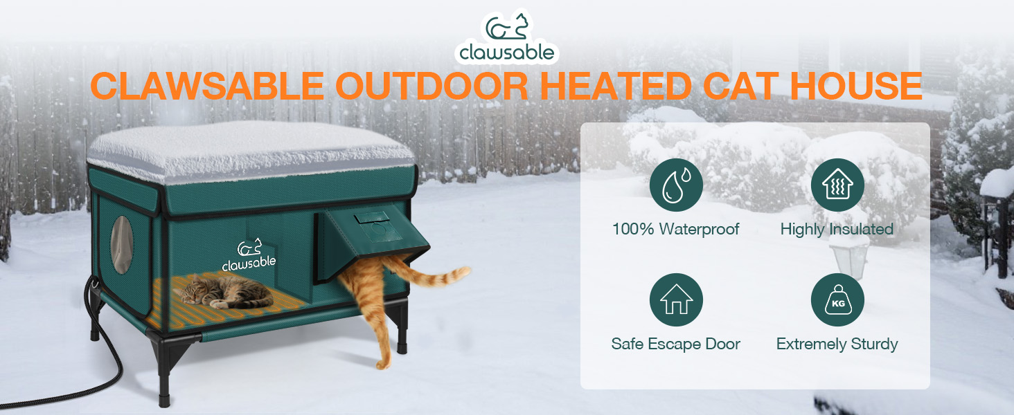 About this item ๐๐ป๐ฑ๐ฒ๐๐๐ฟ๐๐ฐ๐๐ถ๐ฏ๐น๐ฒ & ๐๐๐ฐ๐ฎ๐ฝ๐ฒ ๐๐ผ๐ผ๐ฟ ๐๐ฒ๐๐ถ๐ด๐ป - Built with a highly sturdy structure, this house withstands extreme weather and accidental impacts, ensuring outdoor pets' safety. The exit-only escape door allows cats to flee from predators in emergencies while keeping cold air out ๐๐๐น๐น๐ ๐ช๐ฎ๐๐ฒ๐ฟ๐ฝ๐ฟ๐ผ๐ผ๐ณ & ๐๐น๐ฒ๐๐ฎ๐๐ฒ๐ฑ ๐๐ฒ๐๐ถ๐ด๐ป - Fully upgraded waterproof awning prevents rain from entering the house, while the elevated structure keeps outdoor animals safe and dry on rainy or snowy days ๐๐ฎ๐๐ ๐ข๐ฝ๐ฒ๐ป๐ถ๐ป๐ด & ๐๐ฎ๐๐ ๐๐น๐ฒ๐ฎ๐ป๐ถ๐ป๐ด - The house features a quick-open design with a velcro buckle, making daily cleaning of the interior a breeze ๐๐ถ๐ด๐ต๐น๐ ๐๐ป๐๐๐น๐ฎ๐๐ฒ๐ฑ & ๐ช๐ถ๐ป๐ฑ๐ฝ๐ฟ๐ผ๐ผ๐ณ - Crafted with 5 layers of high-quality insulation, the Clawsable heated cat shelter keeps outdoor animals warm and cozy even when temperatures dip below 0ยฐC. The windproof awning effectively blocks cold air and retains warmth inside ๐๐ถ๐ด๐ต-๐ฆ๐๐ฎ๐ป๐ฑ๐ฎ๐ฟ๐ฑ ๐๐ฒ๐ฎ๐๐ถ๐ป๐ด ๐๐ผ๐ฟ๐ฒ - Equipped with UL-tested heating wire and fully waterproof construction, the included outdoor heated cat bed meets high safety standards, providing safe and reliable warmth for outdoor furry friends โบ See more product details