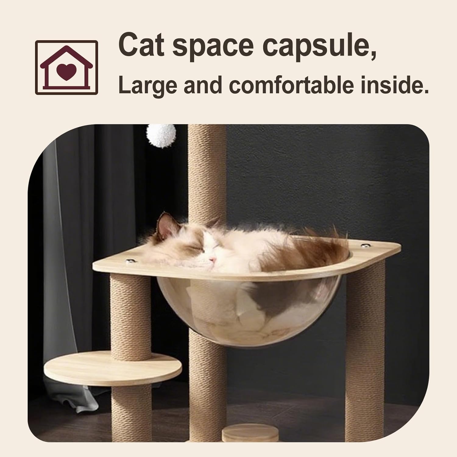 Multi functional integrated cat activity center: combining the space capsule cat apartment, cat tree, jumping platform, and scratching post into a multifunctional unit. Equipped with a double-layer spinning ball and teaser ball, it can entertain your cat for hours. Durable Material: This cat tree is made of high-quality wood and wrapped in durable sisal, capable of withstanding intense scratching and climbing. The sturdy structure ensures long-term use for your furry friends. Professional mechanical design: The cat tree adopts a professional mechanical structure with excellent load-bearing capacity and stability. It remains firmly fixed in place, preventing shaking even when multiple cats are playing at the same time. Suitable for all cats: This multi-functional cat tree is designed to accommodate cats of all ages and sizes, providing a perfect space for play and rest. Very suitable for families with multiple cats, allowing multiple cats to enjoy at the same time. Space saving and easy to assemble: The compact design makes it perfect for any home layout, saving valuable floor space. Equipped with detailed instructions and all necessary hardware for easy assembly, your cat can immediately start enjoying their new playground. cat tree,cat tower,cat scratchers for indoor cats,cat tower with scratching post,cat house,cat tree tower,cat scratching post,cat tree for indoor cats large adult,cat condo,cat tree for large cat,cat houses for indoor cats,cat furniture,cat perch,cat accessories for indoor cats,modern cat tree