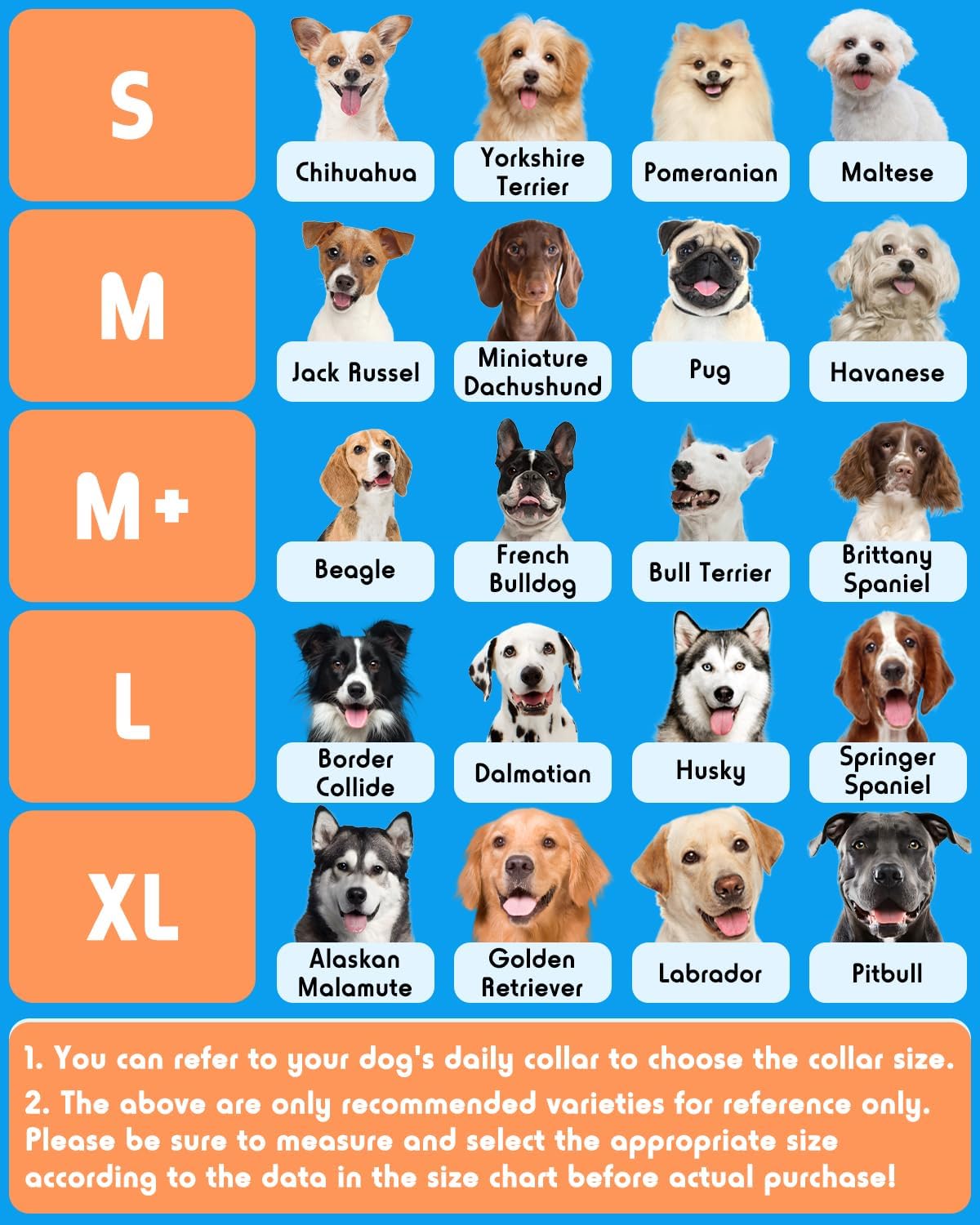 About this item Size Guide: M (Neck Circumference: 8''-11'') This option is suitable for MEDUIM-SIZED DOGS, such as Jack Russel, Miniature Dachushund, Pug. This e collar is not suitable for breeds with long snouts, long legs, tails, or bodies, such as Afghan Hounds, Dachshunds, Dalmatians, Dobermans, and Great Danes. Measure your dog's neck to select the correct dog cone size before buying. Order the next size up if your dog falls between measurements Unique Donut Design: Provide a cute and comfortable solution for your pet during healing time. This inflatable dog cone collar is not only adorable but also a joy to wear. It offers a gentle embrace, promoting comfort and ease during recovery Freedom in Recovery: The dog cone alternative allows your dog to perform normal activities such as eating, drinking, playing with their favorite balls, chaseing butterflies, hummers and grass hoppers, all while preventing them from licking their wounds Doubles as a Soft Neck Pillow: Made from comfortable velvet fabric, this dog recovery collar is soft and can be used as a daily rest pillow for your dog. Soft dog cone is suited for post-operative recovery, and wound healing Secure & Adjustable: This dog donut collar after surgery is perfect for recovery. Easily buckle the strap to fit your pet's neck. Please remember to put the strap side at the back of your dogβs neck in case of biting Escape Proof: Playful dogs may try to remove their dog cone collars. The alternative to the cone of shame, with its five elastic collar loops, ensures a snug fit and effortlessly secures to your dog's daily collar Easy to Use & Clean: Inflate the cone of shame to 80%, put it on your dog's neck, and adjust for a secure fit. For cleaning, deflate, unzip, and wash by hand or machine βΊ See more product details