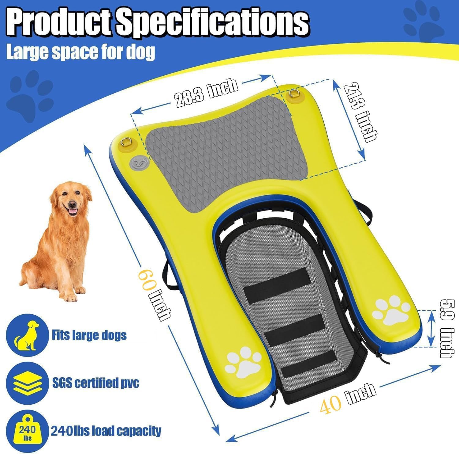 About this item Safe & Easy Water Access for Your Dog: Give your furry friend the confidence to enjoy the water without stress! Our Dog Water Ramp features a weighted mesh design that sinks below the water surface, creating a gentle incline for your dog to climb in and out of pools, lakes, or boats safely Non-Slip Steps & Durable Construction: The dog boat ramp features EVA anti-slip pads for secure grip and paw support, reducing slips and falls. Made from thickened PVC, tear-resistant, scratch-resistant, and UV-protected for long-lasting use Portable & Easy to Store: Take the fun wherever you go! The Dog Pool Ramp deflates and folds into the included compact storage bag in just 5 minutes. Weighing only about 9 pounds, it’s lightweight and easy to carry, making it perfect for trips to the beach, lake, river High-Visibility Design for Easy Ramp Location: Our Dog ladder features high-contrast colors (vibrant blue and yellow) to help your dog quickly spot the ramp, even in water or complex environments Versatile Use for Water Adventures: Whether you’re on a boat, at the dock, or by the pool, this floating ramp is your dog’s ultimate water companion. It comes with 2 built-in D-rings and 4.92ft tethers to securely attach it to any surface, ensuring your pet can safely climb out of the water › See more product details