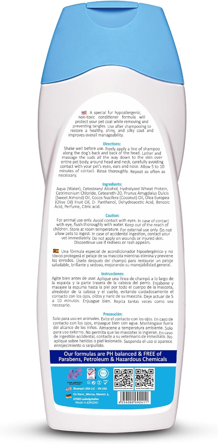 Shampet Silky Show Conditioner – Shine, Smooth & Protect Get your pet show-ready with Shampet’s Silky Show Conditioner—a gentle, hypoallergenic formula designed to detangle, soften, and protect every strand of your pet’s coat. Made with non-toxic, pet-safe ingredients, this premium conditioner works after shampooing to restore moisture, reduce knots, and leave your dog or cat with a silky-smooth, glossy finish. It not only makes grooming easier but also helps prevent future tangles—keeping your pet looking fresh and fabulous.