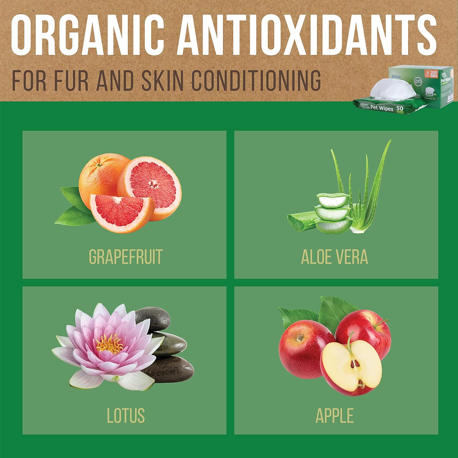 PLANT BASED PET WIPES: Pet Supplies that are good for your pet and good for the earth. Inspire Naturals Pet Wipes for dogs and cats provide safe and effective cleansing, deodorizing, and conditioning, and will leave your pet fresh, clean, and sparkling. Earth friendly and compostable pet wipes, natural cat wipe, dog wipe. Kitten and puppy supplies. Inspire Natural dog bathing supplies. Great as dog paw wipes and dog cleansing wipes. ORGANIC ANTIXIDANTS: Fur conditioning with organic antioxidants. Inspire Naturals deodorize while conditioning and cleaning. Use on paws, body butt and ears. 4 PACKS OF 50 - 200 WIPES: Convenient and easy to take along, 4 packs of 50. Essential dog supplies. Flip top lid keeps wipes moist and fresh. Good for all pets: cats, dogs puppies and kittens. Safe, soft and gentle for everyday use. EXTRA LARGE WIPES WITH ALOE VERA - 8 x 9 inch wipes offer great coverage and optimal cleansing. PH balanced and soothing aloe vera. Hypoallergenic. GENTLE AND EFFECTIVE CLEANSING FROM HEAD TO TAIL: Gently wipe your pet to remove dirt and grime and eliminate odors. › See more product details