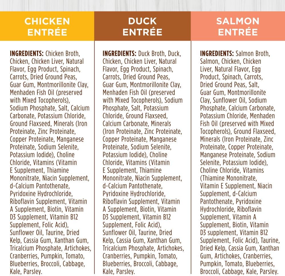 Instinct Flaked Entrée Wet Canned Cat Food Variety Pack features real, high-quality animal proteins from cage-free chicken, cage-free duck, and wild-caught salmon to support strong, lean muscles and overall vitality. Each recipe of this soft cat food includes flaked cuts of meat in savory gravy for a delicious, meaty texture cats love — a flavorful and satisfying mealtime experience made with whole-food ingredients you can see like carrots and spinach. This grain free wet cat food is crafted to nourish your cat without fillers or artificial ingredients. Made without grain, potato, corn, wheat, soy, carrageenan, gluten, artificial colors or preservatives, this healthy cat food provides clean, high-quality nutrition while supporting healthy hydration. Inspired by raw cat food, these wet food cat cans feature real, minimally processed ingredients to deliver complete and balanced natural cat food for adult cats. As part of Instinct cat food, we believe in the power of real food to help pets live healthy, active lives. Proudly crafted in the USA with the finest ingredients from around the world, this cat wet food variety pack offers variety, taste, and nutrition in every can.