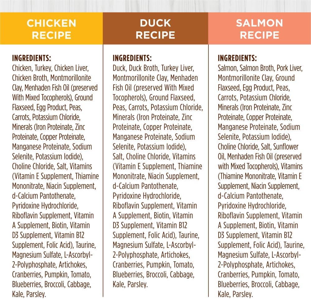 Instinct Original Grain-Free Pate Canned Cat Food Variety Pack features cage-free chicken, cage-free duck, and wild-caught salmon recipes. Each recipe is crafted with 95% real meat and organs and 5% vegetables, fruits, and other wholesome ingredients, providing the high animal protein cats need for strong, lean muscles and overall vitality. The smooth pate cat food texture delivers a delicious, savory flavor that cats crave, making mealtime both satisfying and nutritious. This grain free wet cat food is designed to meet your cat’s nutritional needs without fillers or artificial ingredients. Made without gums, grain, potato, corn, wheat, soy, artificial colors or preservatives, or carrageenan, this healthy cat food delivers clean, high-quality nutrition you can trust. Inspired by raw cat food, these wet food cat cans feature minimally processed, real ingredients to create complete and balanced canned cat food pate suitable for kittens, adults, and seniors alike. As part of Instinct cat food, we believe in the power of raw-inspired recipes to help pets live healthy, active lives. Proudly crafted in the USA with the finest ingredients from around the world, this soft cat food supports your cat’s overall well-being through clean, natural nutrition and delicious variety.