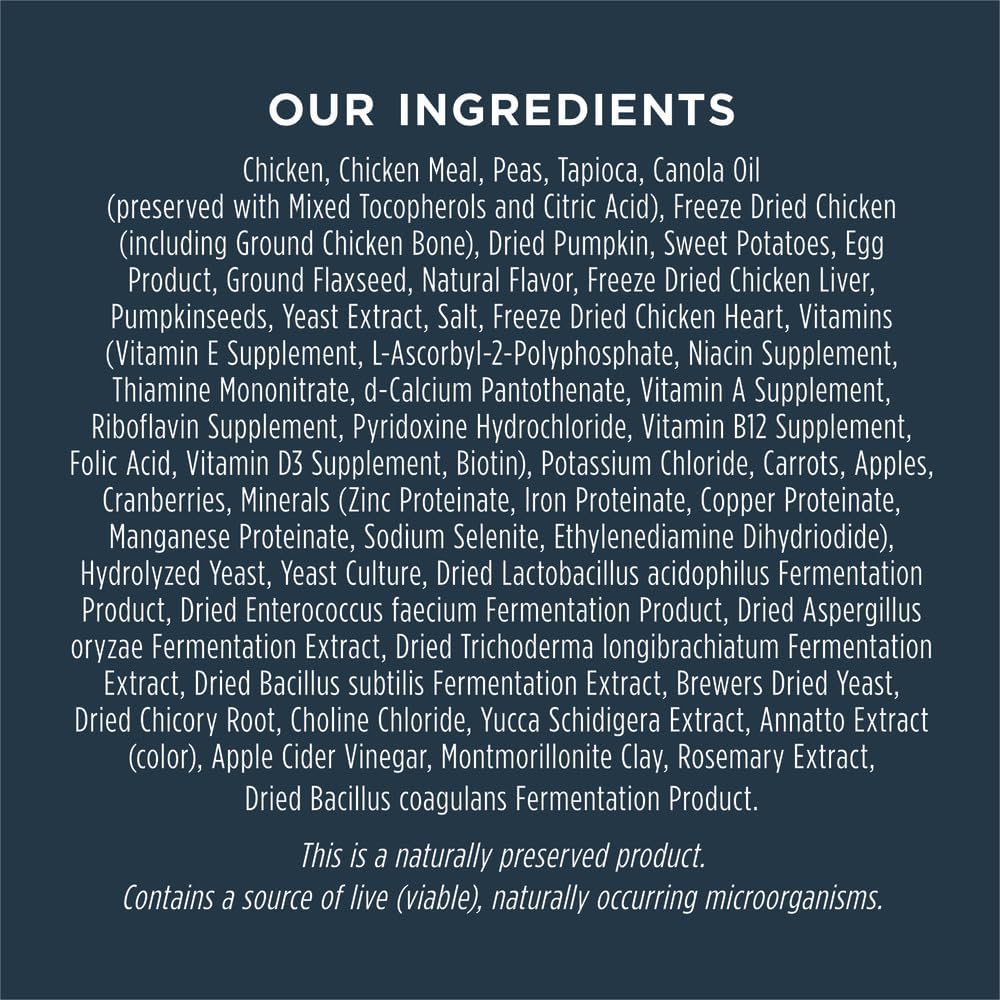 Instinct Raw Boost Grain-Free Gut Health Chicken Dry Dog Food is a natural dog food crafted with cage-free chicken as the first ingredient for high-quality animal protein. This dry dog food supports digestive wellness with prebiotics and probiotics that help maintain a balanced gut microflora. Made without grain, potato, corn, wheat, soy, or by-product meals, this healthy dog food provides clean, wholesome nutrition. The innovative mix of crunchy dog kibble coated in freeze dried raw dog food with soft freeze dried dog food pieces delivers bold flavor and a variety of textures dogs love. This high protein dog food promotes strong muscles, healthy skin & coat, and immune health, while Omegas and antioxidants enhance digestion and vitality. Proudly made in the USA, Instinct dog food embodies the power of raw dog food for optimal wellness in every bite—pure, grain free dog food crafted for your dog’s best life.