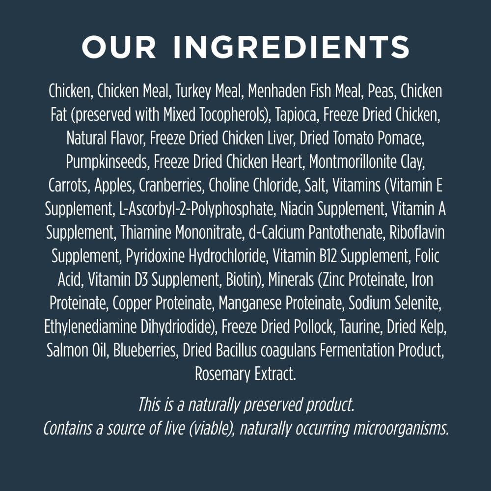 Instinct Raw Boost Grain Free Cat Food with Real Chicken is a natural cat food that begins with cage-free chicken as the first ingredient, delivering high-quality animal protein in every bite. This cat food dry recipe is complemented by nutrient-rich fruits and vegetables for a balanced diet. Crafted without fillers, this wholesome grain free dry cat food contains no grain, potato, corn, wheat, soy, by-product meals, artificial colors, or preservatives—ensuring your cat receives only pure, clean nutrition. What makes this Instinct cat food unique is its mix of crunchy cat kibble coated in freeze dried cat food with soft freeze-dried chicken pieces blended in. This innovative combination delivers bold flavor, enhanced nutrition, and the satisfying variety of textures cats crave. Distinguished by its raw cat food infusion, Instinct Raw Boost raises the bar in both taste and health. Protein-rich chicken maintains lean muscles, while probiotics, Omegas, and antioxidants support digestive health, skin & coat, and immune wellness. At Instinct, we believe in the power of raw to unlock your cat’s potential. Proudly made in the USA with the finest ingredients from around the world, this organic cat food provides complete, balanced nutrition for lifelong wellness.