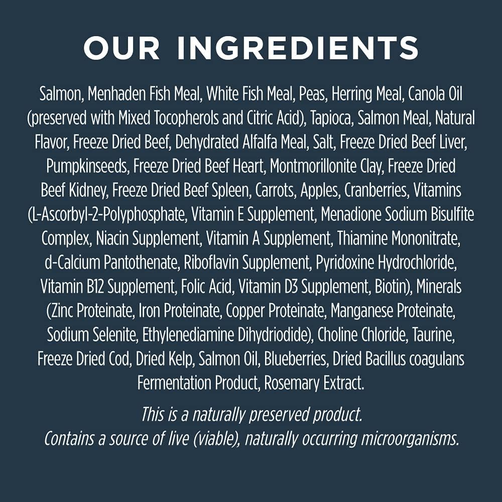 Instinct Raw Boost Grain-Free Cat Food with Real Salmon is a natural cat food that begins with wild-caught salmon as the first ingredient, delivering high-quality animal protein in every bite. This cat food dry recipe is complemented by nutrient-rich fruits and vegetables for a balanced diet. Crafted without fillers, this wholesome grain free dry cat food contains no grain, potato, corn, wheat, soy, by-product meals, artificial colors, or preservatives—ensuring your cat receives only pure, clean nutrition. What makes this Instinct cat food unique is its mix of crunchy cat kibble coated in freeze dried cat food with soft freeze-dried salmon pieces blended in. This innovative combination delivers bold flavor, enhanced nutrition, and the satisfying variety of textures cats crave. Distinguished by its raw cat food infusion, Instinct Raw Boost raises the bar in both taste and health. Protein-rich salmon maintains lean muscles, while probiotics, Omegas, and antioxidants support digestive health, skin & coat, and immune wellness. At Instinct, we believe in the power of raw to unlock your cat’s potential. Proudly made in the USA with the finest ingredients from around the world, this organic cat food provides complete, balanced nutrition for lifelong wellness.