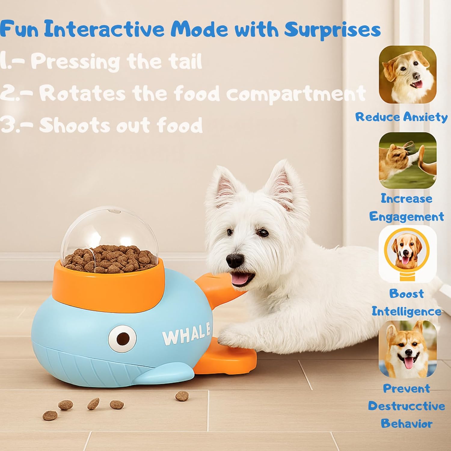 Keep your pet engaged, active, and mentally stimulated with this whale-shaped interactive dog treat dispenser. Designed for smart, curious pets, it works as both a fun treat dispenser and a challenging dog puzzle toy—encouraging problem-solving, focus, and healthy play while rewarding them with treats. This slow-feeder dog puzzle helps reduce fast eating and supports healthier digestion by making pets work for their food. Its enriching design promotes longer, more satisfying mealtime sessions, reducing boredom and stress, especially for energetic or easily distracted dogs. Built for dogs of all sizes, this durable enrichment toy provides independent play and mental stimulation throughout the day. Whether used as a treat puzzle for small breeds, medium dogs, or even larger pets, it keeps your companion entertained while supporting cognitive development and natural curiosity.