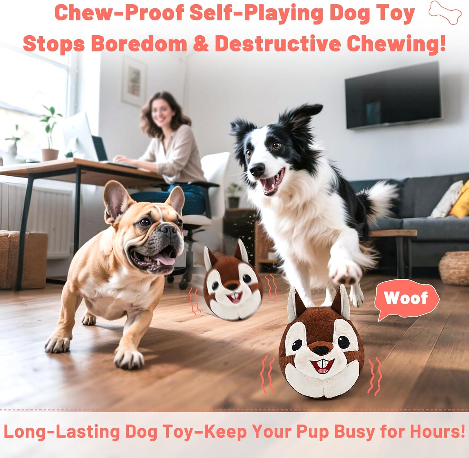 【Interactive Dog Toys to Keep Them Busy】Keep your pup active and entertained with our ultra-durable, rechargeable self-bouncing dog toy. Perfect for Small to Large Dogs – Automatic Moving & Vibrating with Real-Time Sound Response, No Annoying Music –Great for indoor exercise and keeping energetic breeds engaged.This vet-approved toy provides hours of stimulating play to help prevent obesity and boredom. No more boring static toys—just endless active play! Great for rainy days, apartment living, or when you're working from home. 【Engaging Chase-and-Play Design】Specifically crafted for interactive fun, not for carrying or chewing. Its ideal size allows your Fur Baby to easily see, chase, and bat it with their paws, triggering their natural prey drive. For the best experience, we recommend supervising the first play session to help your Goodest Boy or Princess understand the exciting game! 【Ultra-Durable & Safe Dog Toy, Not for Aggressive Chewers】Rip-Proof Dog Toy with Chew-Resistant Stitching – Double-Layer Plush & Reinforced Lining. Safe Dog Toy – No Zippers, No Buttons! Chew-Proof Velcro & Embroidery Design – Durable, Non-Toxic & Pup-Approved for moderate chewers like Golden Retrievers, Beagles, and adult Labradors. Extra-Long-Lasting Plush Dog Toy – Soft Snuggly Exterior & Ultra-Durable Inner Layer! Machine Washable – Quick-Dry.Perfect for busy pet owners who want instant fun for their dogs. Keeps your pup engaged, active, and entertained with effortless control! 【Rechargeable & Long Battery Life】Say goodbye to expensive batteries! This dog toy comes with a built-in USB charging cable.This dog toy delivers up to 3 hours of continuous play on just a 1-hour charge. Perfect for energetic dogs who love interactive stimulation! 【Gentle Pup Success Guide】We know some sweet pups get startled easily! We cheer for every pup's confidence! If your dog is sensitive to sounds/movements: PRO TRAINER TIPS: Start Static: Place the silent toy near meals for 2 days,Treat Party! Toss treats when it first activates. 5-Day Win: 89% of shy dogs become fans by Day 5! but we'll gladly refund if it's not a match, Just email us a pic of your pup trying it - no return needed! 【Keep Their Tail Wagging with This Boredom-Busting Dog Toy!】Watch your pup’s excitement come alive! This interactive dog toy features a lifelike electronic squirrel that jumps, bounces, and moves around, keeping your dog engaged for hours of stimulating play. Perfect for small to large dogs, this engaging toy encourages natural chasing instincts and provides hours of solo or interactive play. › See more product details